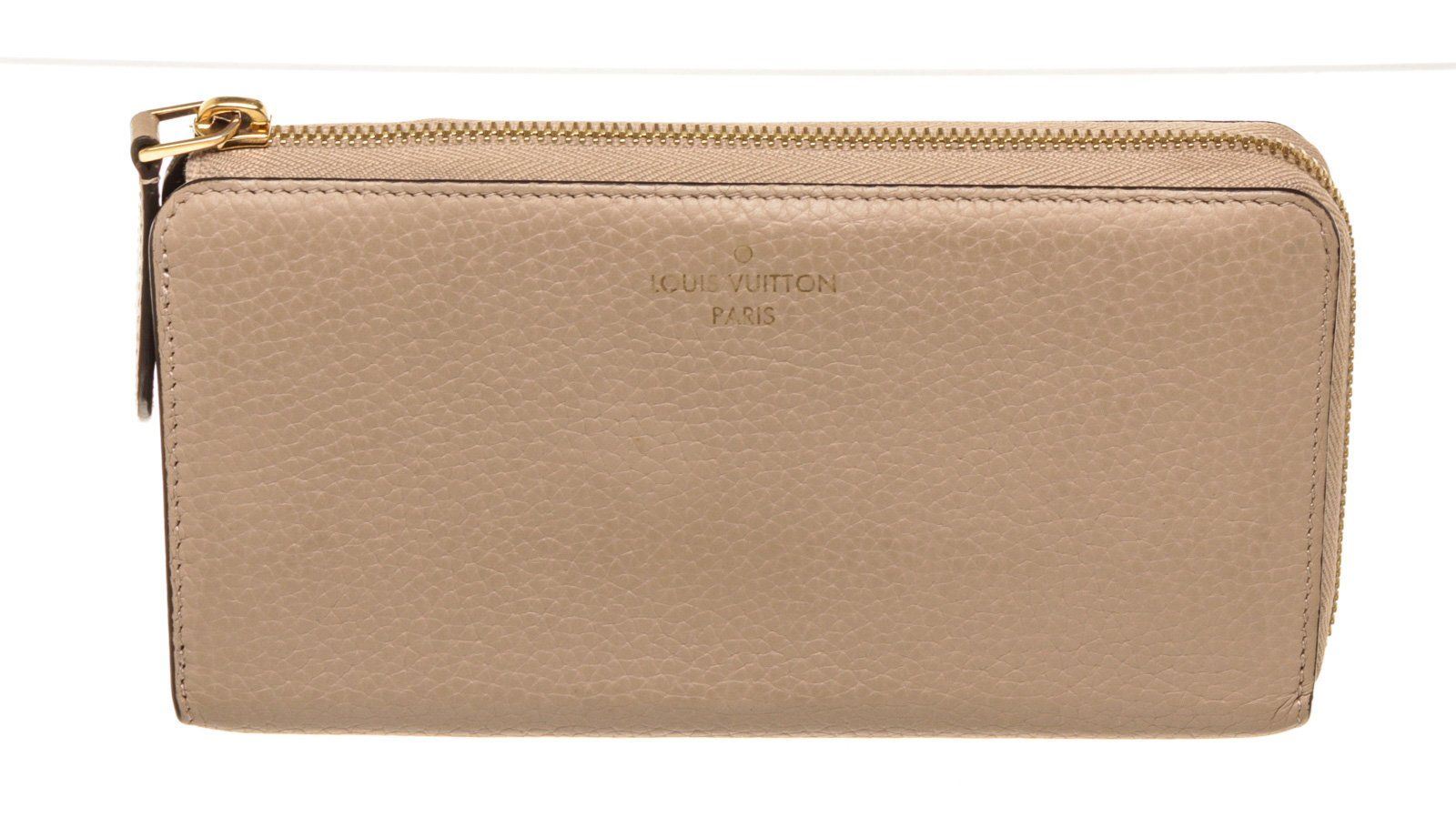 Louis Vuitton Beige Taurillon Leather Porte Cornet Wallet with epi Leather, gold-tone hardware, interior three compartments pockets and snap closure.