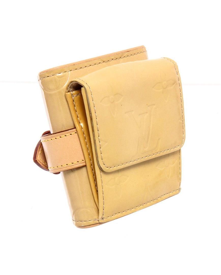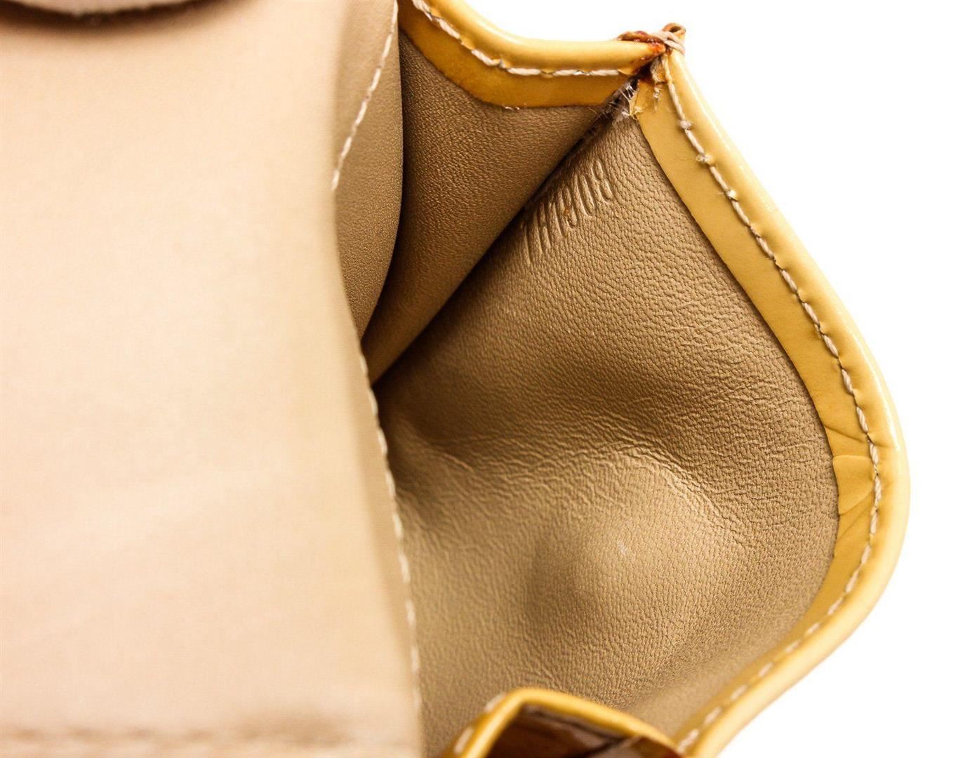 Beige embossed patent leather Louis Vuitton Vernis Lafayette Street coin purse bracelet with gold-tone hardware, tan leather trim, single flap pocket at front and buckle closure. Measurements: Length: 11 in / 28 cm Width: 1 in / 3 cm 3.5 in / 9 cmCONDITION: Pre-Owned Good overall, please see photographs for detail.
