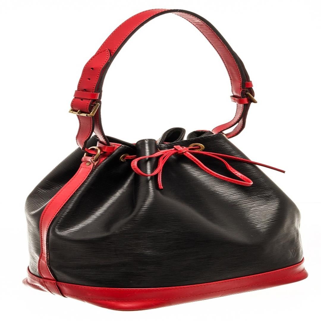 One Louis Vuitton Black And Red Epi Leather Noe Shoulder Bag. Item is sold AS-IS. All available information is listed in the description and shown in the photo. Louis Vuitton black and red epi leather Noe shoulder bag with this vintage 1991 features a bicolor epi leather body, an adjustable shoulder strap, and a top red leather drawstring closure and interior zipper pocket. Such a great color combination bag from the 90s. Leather is peeling on strap where date code is and the hardware is tarnished. Please refer to photos. Height: 10.23" Width: 13.38" Depth: 7.08", Shoulder Drop: 20.07" / 26 x 34 x 18 Cm