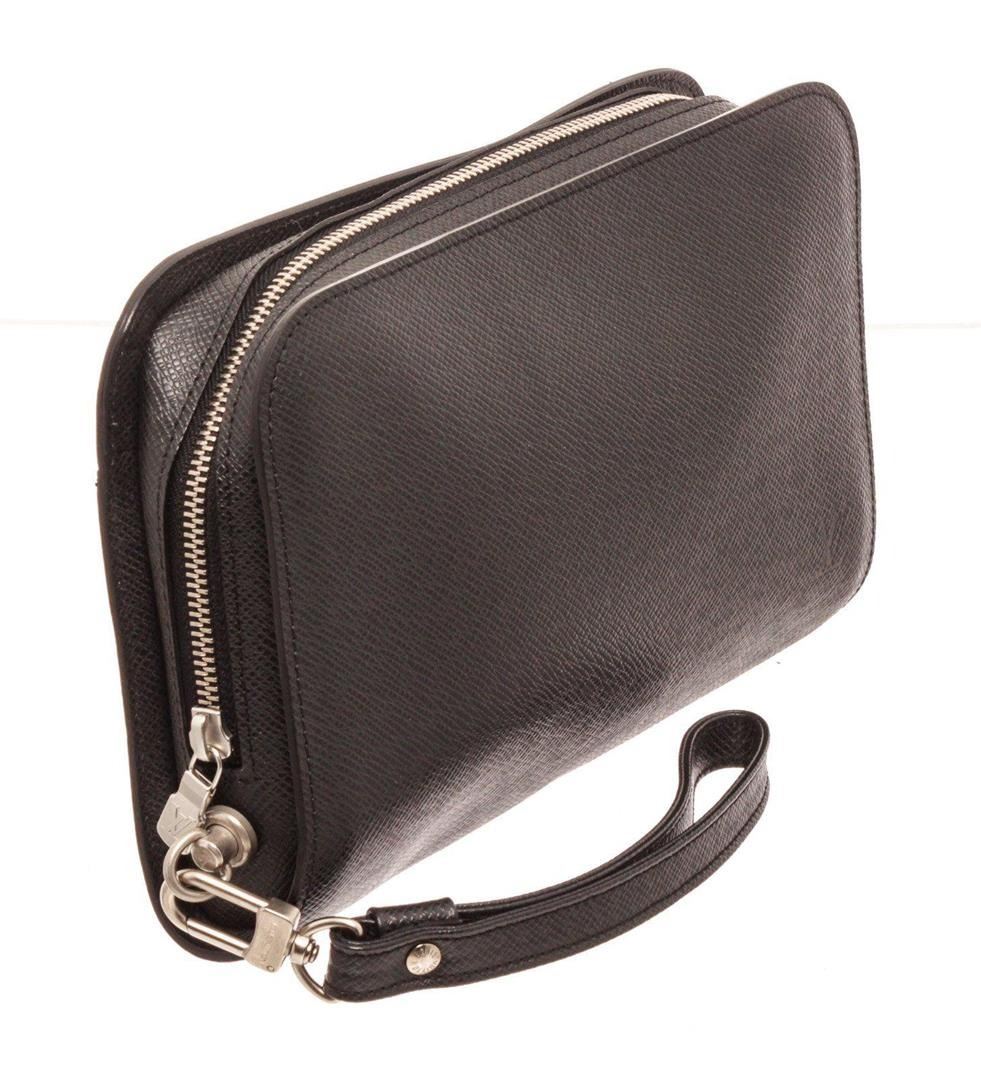 Louis Vuitton Black Baikal Pochette Clutches. All available information is listed in the description and shown in the photos. Louis Vuitton Black Baikal Pochette Clutches with gold-tone hardware, trim tan vachetta leather, leather lining, three interior compartments pockets and zipper closure. MEASUREMENTS: Length 7 in / 18 cm Width 9.25 in / 23 cm Height 2 in / 5 cmCONDITION: Pre-Owned Good overall, please see photographs for detail.