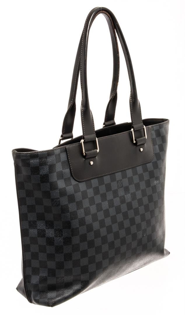 Louis Vuitton Black Damier Cobalt Voyage Tote Bag. All available information is listed in the description and shown in the photos. louis vuitton black damier cobalt voyage tote bag with exterior material: canvas (coated), exterior color: blue, interior material: microfiber, interior color: black, hardware color: silver Height 13", Width 14.5", Depth 4.5", Shoulder Strap Drop: 9" / 33.02 x 36.83 x 11.43 Cm