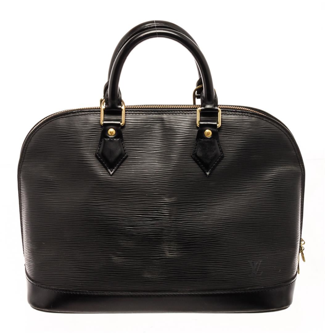 Louis Vuitton Black Epi Leather Alma Satchel Bag. All available information is listed in the description and shown in the photos. Louis Vuitton Black Epi Leather Alma Satchel Bag with black, épi leather, debossed logo to the front, two-way zip fastening, two rounded top handles, silver-tone hardware, rectangle body. Depth 6.7 in, Height 9.3 in, Width 12.2 in / Depth 17 cm, Height 23.5 cm Width 31 cm