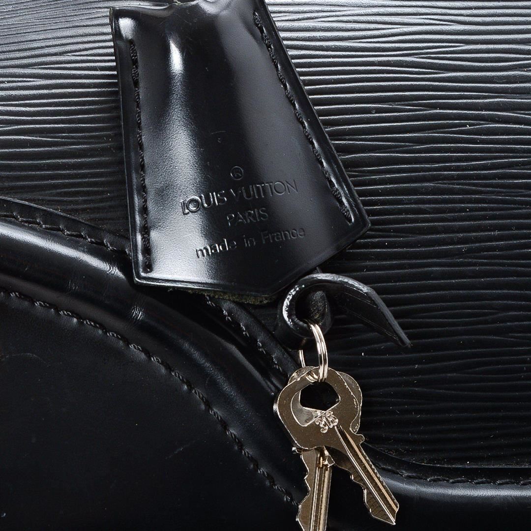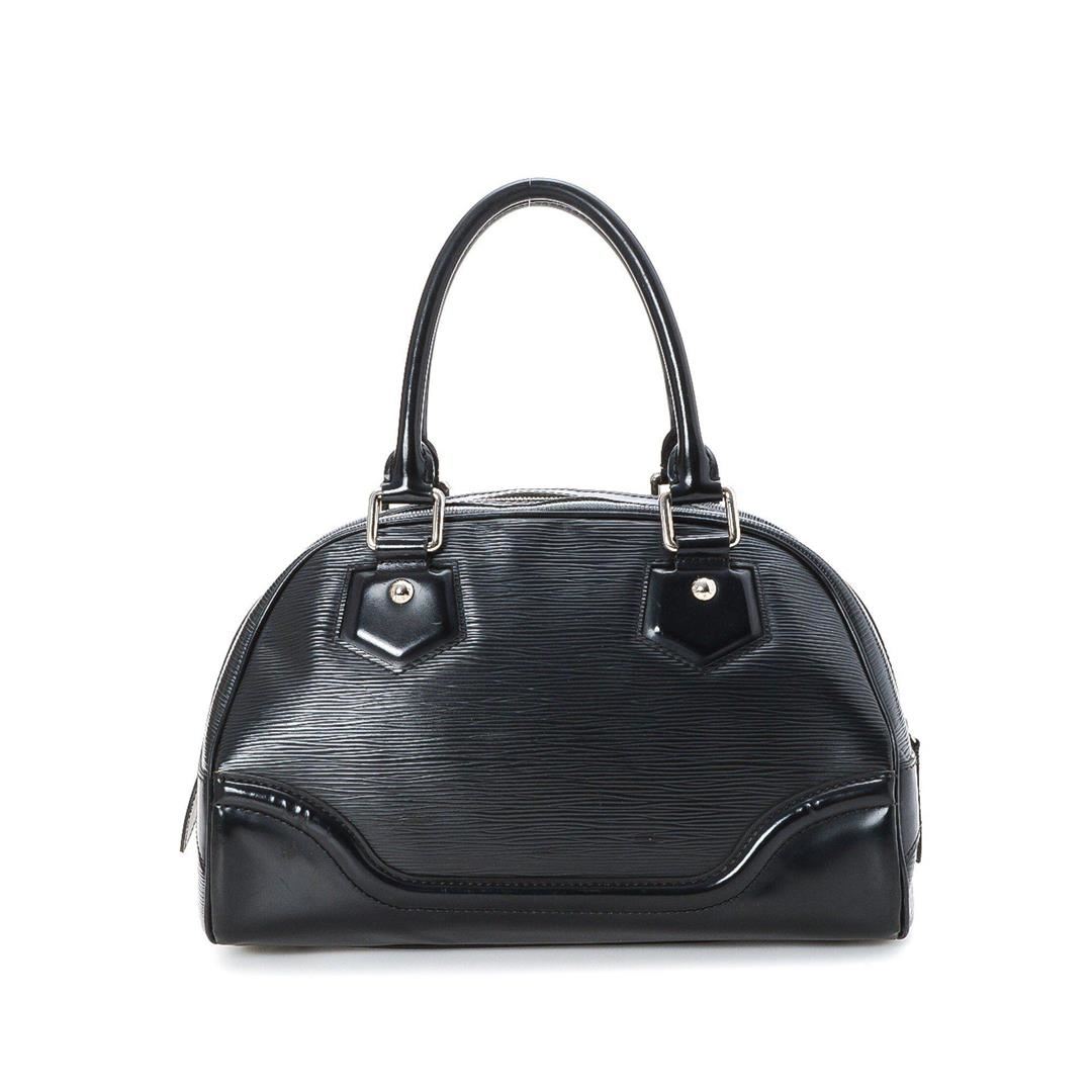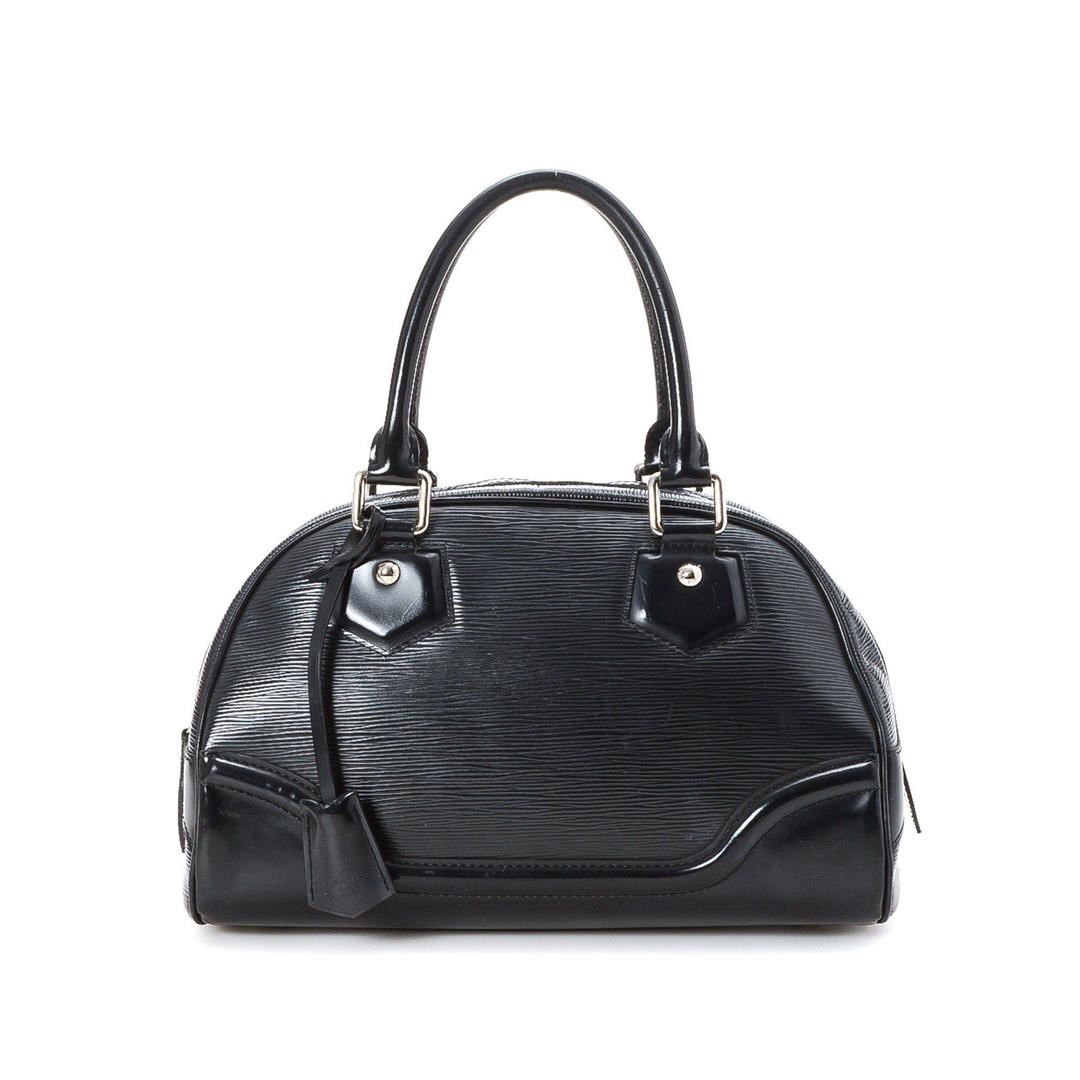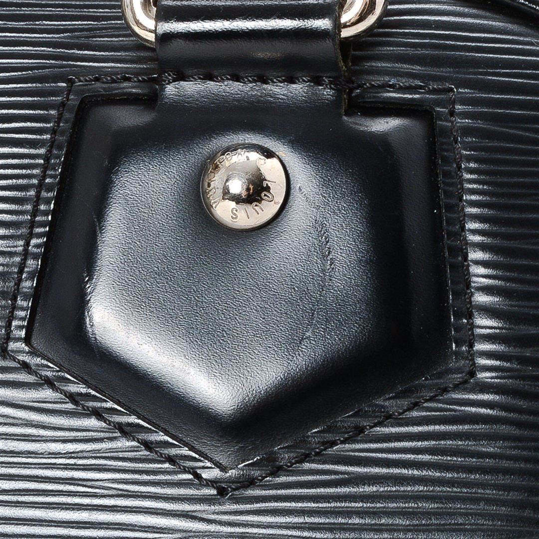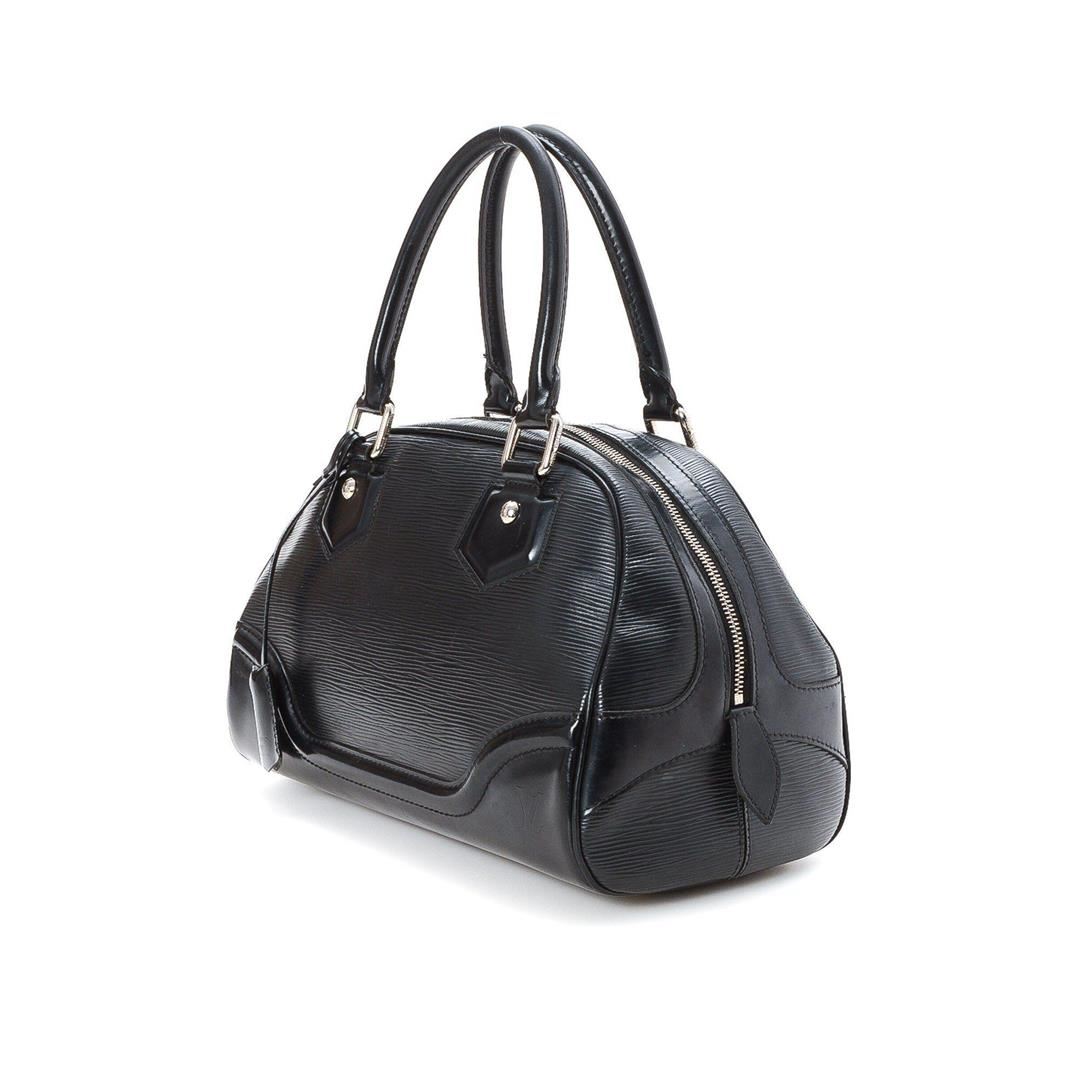 Louis Vuitton Black Epi Leather Bowling Montaigne PM Handbag with silver-tone hardware, epi leather material, slip Interior pocket, dual top handle bag and zipper closure. Measurements: Length: 7 in / 18 cm Width: 13 in / 33 cm 8.5 in / 22 cm Condition: Pre-Owned Good overall, please see photographs for detail.
