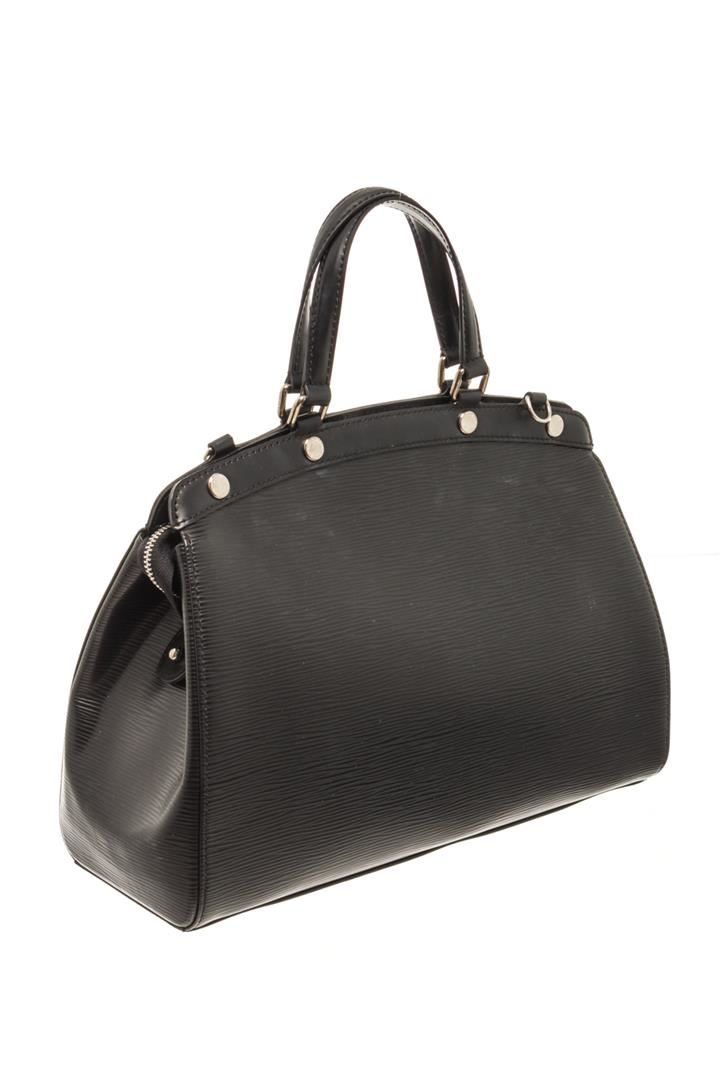 One Louis Vuitton Black Epi Leather Brea MM Bag. Item is sold AS-IS. All available information is listed in the description and shown in the photo. louis vuitton black epi leather brea mm bag with the feminine shape of louis vuitton's brea is inspired by the doctor's bag. crafted from epi leather in black, the bag has a perfect finish. the fabric interior is spacious and it is secured by a zipper. the bag features double handles, protective metal feet at the bottom and silver-tone hardware. simple and classic, this bag is perfect for daily use. Height: 9.64" Width: 5.11" Depth: 13.18" , Handle Drop: / 24.5 x 13 x 33.5 Cm