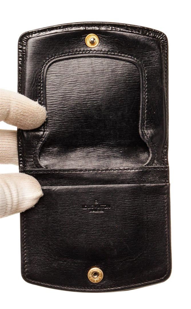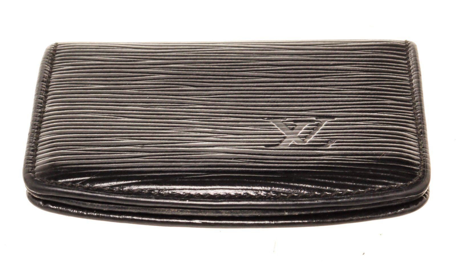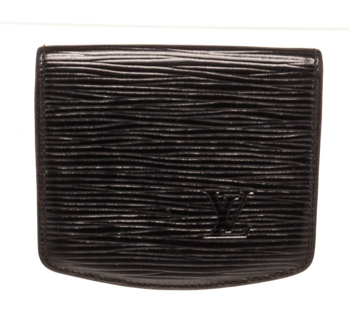 Louis Vuitton Black Epi Leather Cuvette Souple Coin Wallet with epi leather, gold-tone hardware, interior slip pockets and push lock closure.