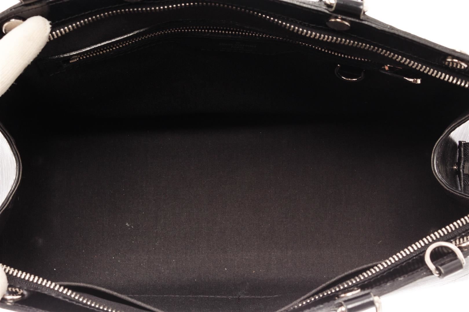 Louis Vuitton Black Epi Leather Electric Brea MM Satchel Bag. All available information is listed in the description and shown in the photos. Louis Vuitton Black Epi Leather Electric Brea MM Satchel Bag, silver-tone hardware, flat handles & single adjustable shoulder strap, canvas lining & three interior pockets, zip closure at top, protective feet at base. Condition Details: Some surface scratches, tarnishing on protective feet, minor wear on handles. Height: 9.5" Width: 13.25" Depth: 5", Handle Drop: 4.5", Shoulder Strap Drop: 16" / 24.13 x 33.65 x 12.7 Cm