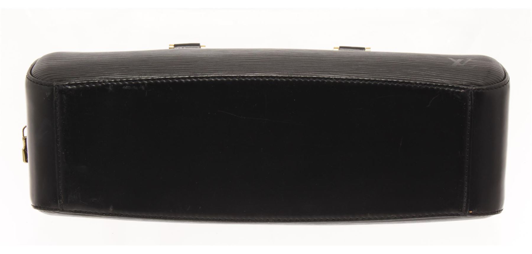 One Louis Vuitton Black Epi Leather Jasmin Satchel Bag. Item is sold AS-IS. All available information is listed in the description and shown in the photo. Louis Vuitton Black Epi Leather Jasmin Satchel Bag with top handle, gold tone hardware, suede lining, interior pocket slip, zipper closure. Depth 3.9 in, Handle 3.5 in, Height 7.1 in, Width 12.6 in/ Depth 10 cm, Handle 9 cm, Height 18 cm, Width 32 cm