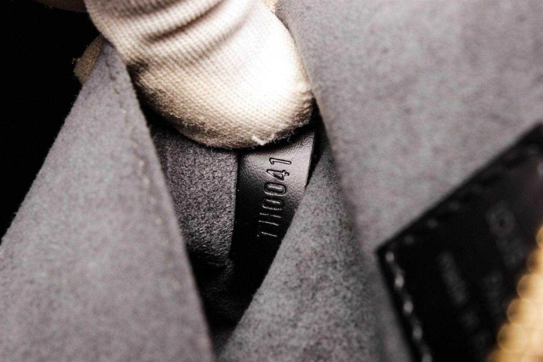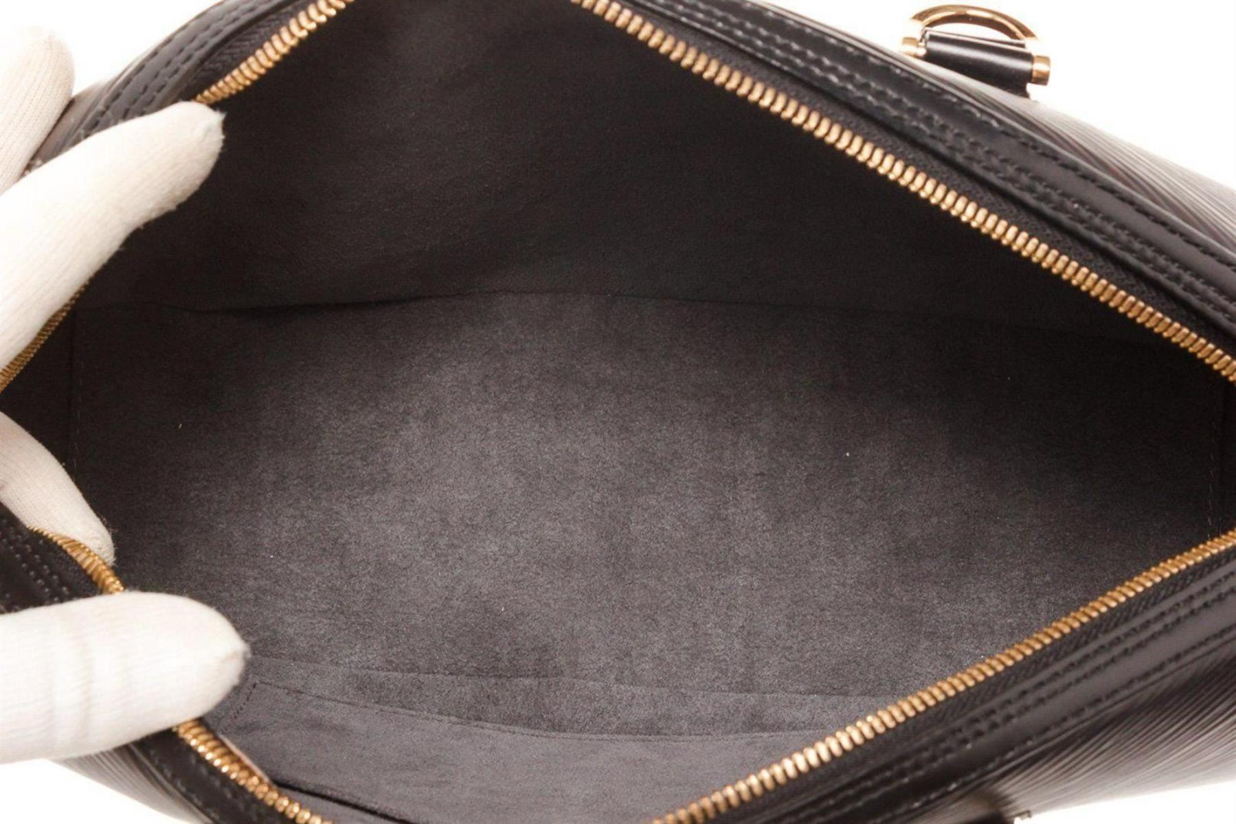 Louis Vuitton Black Epi Leather Jasmin Shoulder Bag with material epi lether, gold-tone hardware, trim tan vachetta leather, interior slip pocket, dual top handle, shoulder strap and zipper closure.