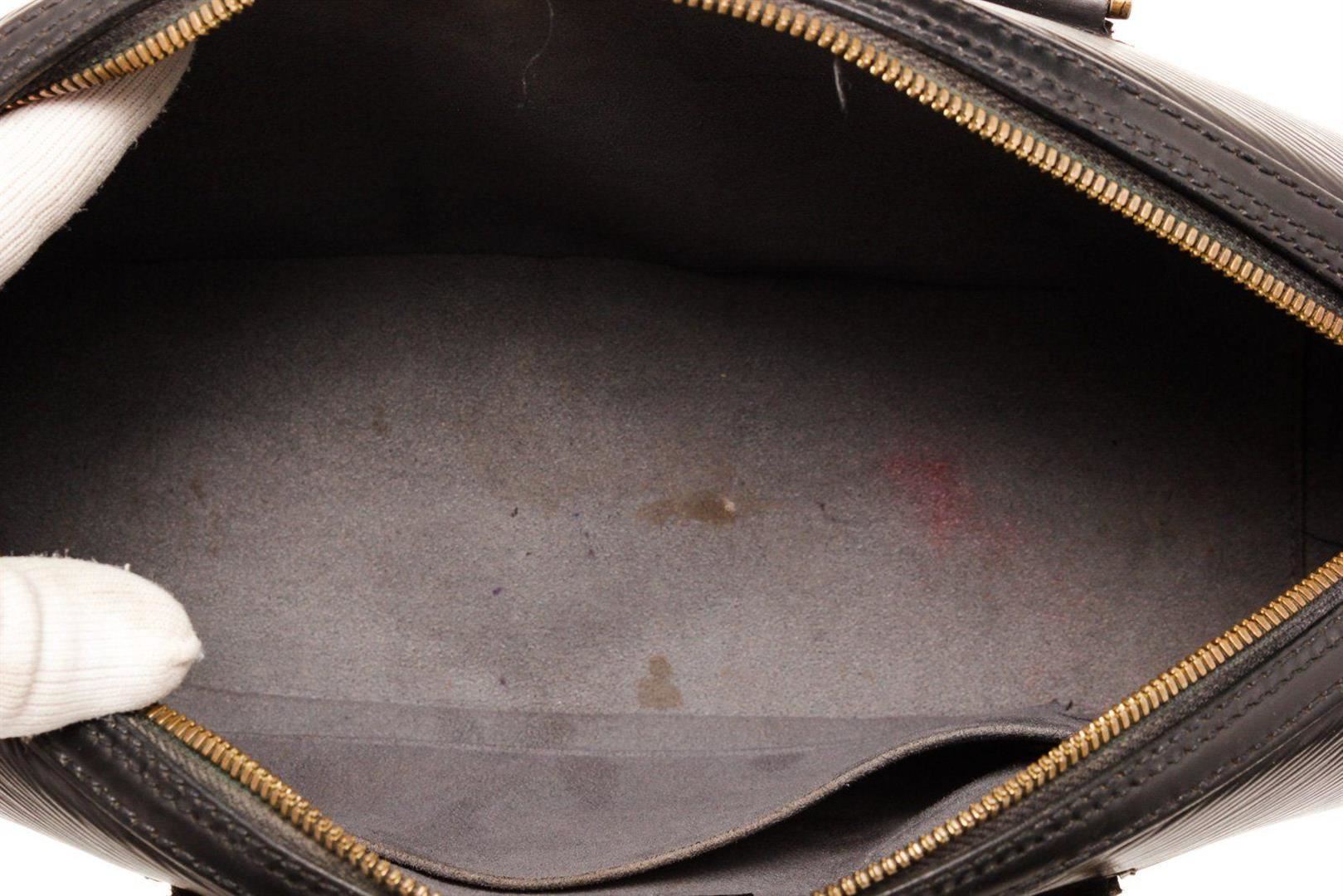 One Louis Vuitton Black Epi Leather Jasmin Shoulder Bag. Item is sold AS-IS. Please check photos and descriptions for all available details. Louis Vuitton Black Epi Leather Jasmin Shoulder Bag with gold-tone hardware, interior slip pocket, dual top handle, shoulder strap and zipper closure.