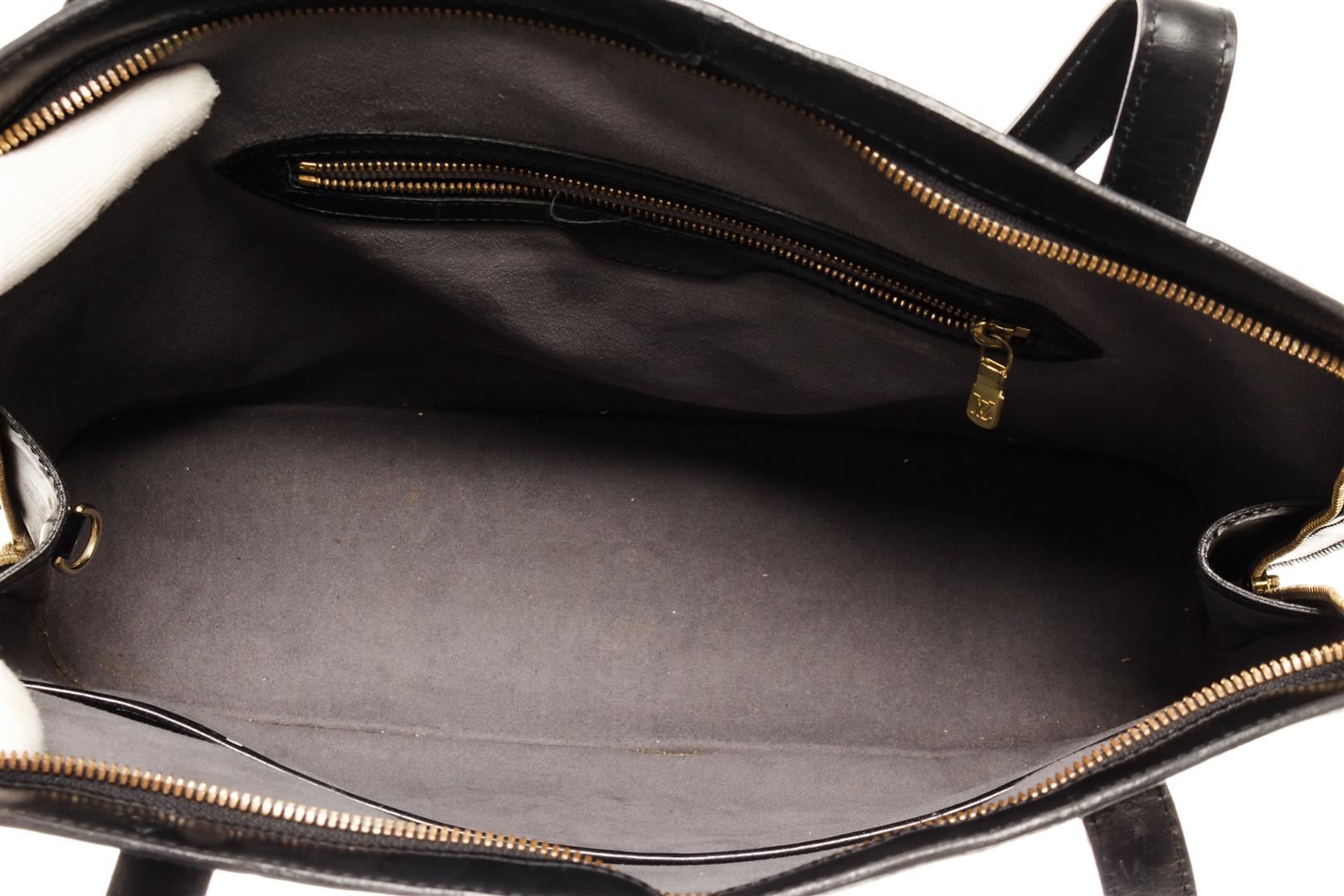 One Louis Vuitton Black Epi Leather Lussac Shoulder Bag. Item is sold AS-IS. All available information is listed in the description and shown in the photo. Louis Vuitton Black Epi Leather Lussac Shoulder Bag with brass hardware, dual flat leather shoulder straps, embossed LV logo at front corner, grey Alcantara lining, dual pockets at interior walls; one with zip closure and two-way zip closure at top. .