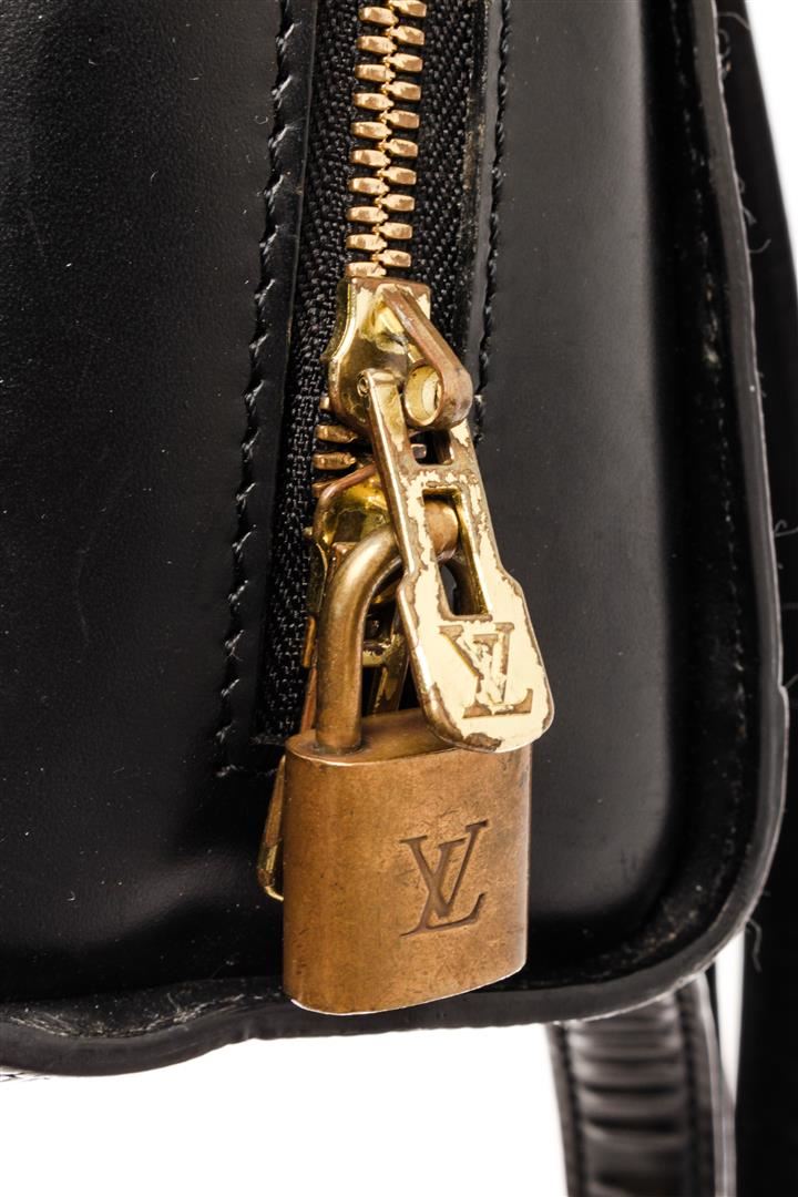 Louis Vuitton Black Epi Leather Mabillon Backpack. All available information is listed in the description and shown in the photos. Louis Vuitton Black Epi Leather Mabillon Backpack with one exterior pocket, adjustable shoulder straps, grey suede interior, one interior pocket and gold-tone zipper closure with lock and key. Length 11", Width 9", Depth 3", Shoulder Strap 28" / 27.94 x 22.86 x 7.62 Cm
