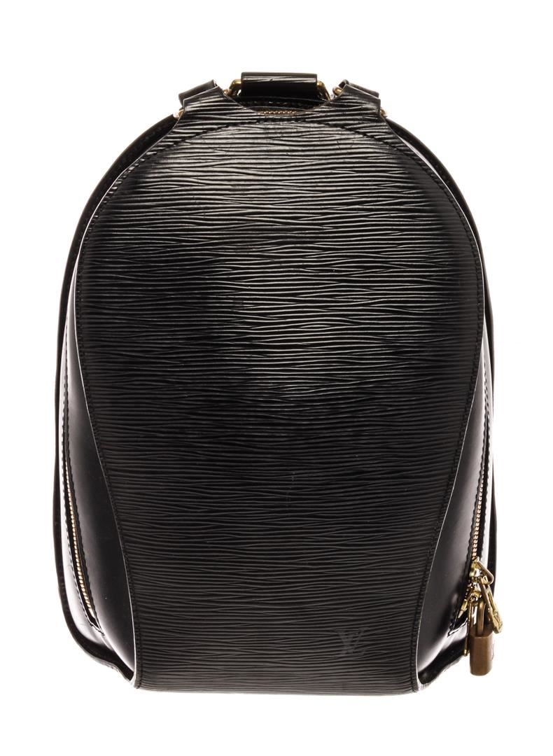 Louis Vuitton Black Epi Leather Mabillon Backpack. All available information is listed in the description and shown in the photos. Louis Vuitton Black Epi Leather Mabillon Backpack with one exterior pocket, adjustable shoulder straps, grey suede interior, one interior pocket and gold-tone zipper closure with lock and key. Length 11", Width 9", Depth 3", Shoulder Strap 28" / 27.94 x 22.86 x 7.62 Cm