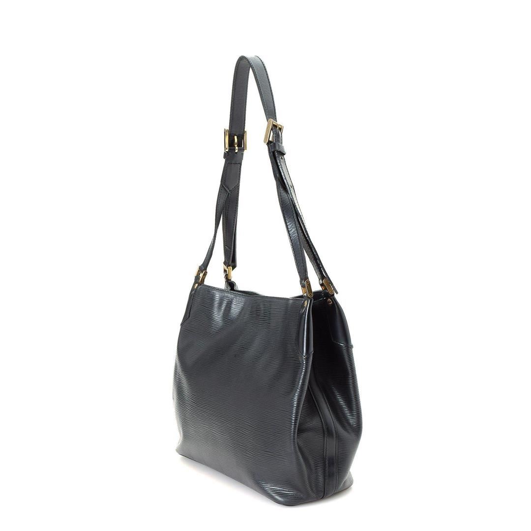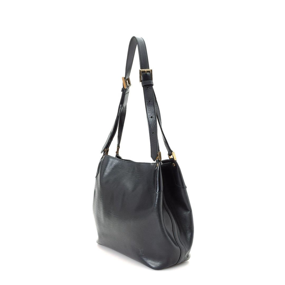Louis Vuitton Black Epi Leather Mandara Shoulder Bag with black-tone hardware, epi leather material, trim tan vachetta leather, interior slip pocket, adjustable strap and snap closure. Measurements: Length: 5 in / 13 cm Width: 13 in / 33 cm 12.5 in / 32 cmCONDITION: Pre-Owned Good overall, please see photographs for detail.