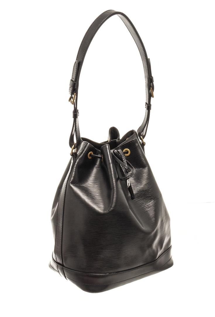 One Louis Vuitton Black Epi Leather Noe Shoulder Bag. Item is sold AS-IS. All available information is listed in the description and shown in the photo. Louis Vuitton Black Epi Leather Noe Shoulder Bag 32 x 26 x 19 cm / 12.59" x 10.23" x 7.48" Inches
