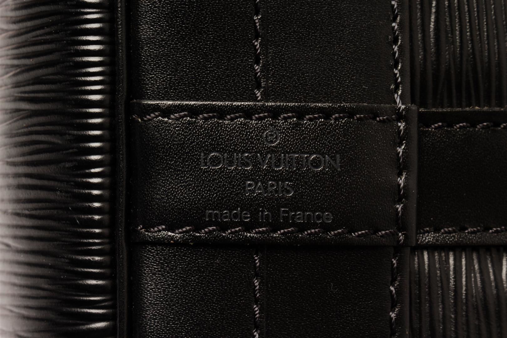 Louis Vuitton Black Epi Leather Noe Shoulder Bag. All available information is listed in the description and shown in the photos. Louis Vuitton Black Epi Leather Noe with adjustable strap, suede lining, drawstring closure, gold tone hardware. Height: 13.5 in (34.29 cm), Width: 10.5 in (26.67 cm), Depth: 8 in (20.32 cm)