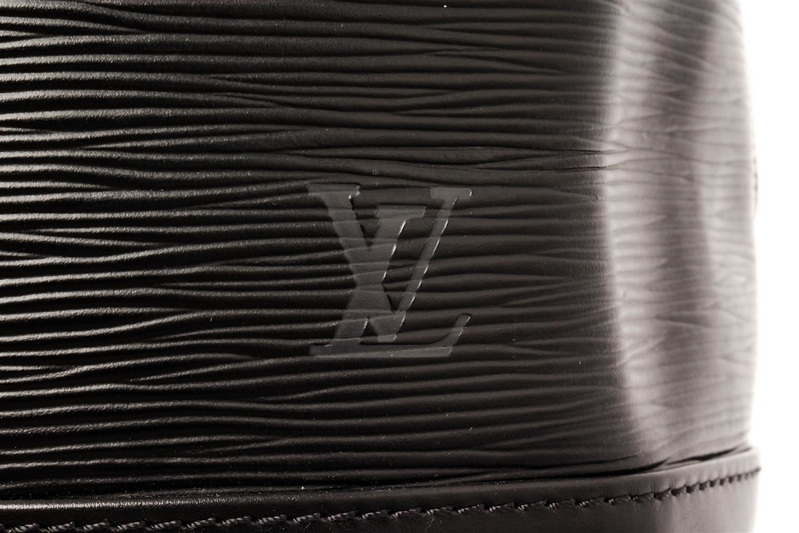 Louis Vuitton Black Epi Leather Noe Shoulder Bag. All available information is listed in the description and shown in the photos. Louis Vuitton Black Epi Leather Noe with adjustable strap, suede lining, drawstring closure, gold tone hardware. Height: 13.5 in (34.29 cm), Width: 10.5 in (26.67 cm), Depth: 8 in (20.32 cm)