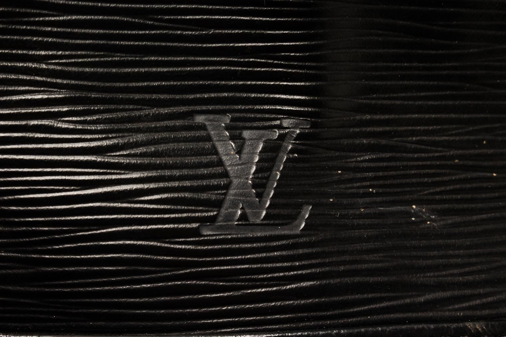 One Louis Vuitton Black Epi Leather Noe. Item is sold AS-IS. All available information is listed in the description and shown in the photo. Louis Vuitton Black Epi Leather Noe with adjustable strap, suede lining, drawstring closure, gold tone hardware.
