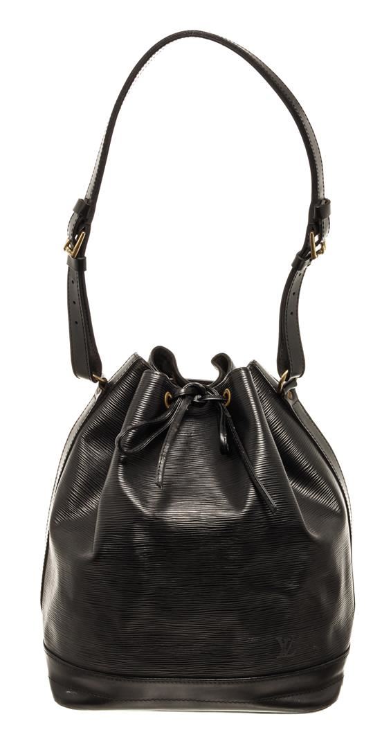 One Louis Vuitton Black Epi Leather Noe. Item is sold AS-IS. All available information is listed in the description and shown in the photo. Louis Vuitton Black Epi Leather Noe with adjustable strap, suede lining, drawstring closure, gold tone hardware.