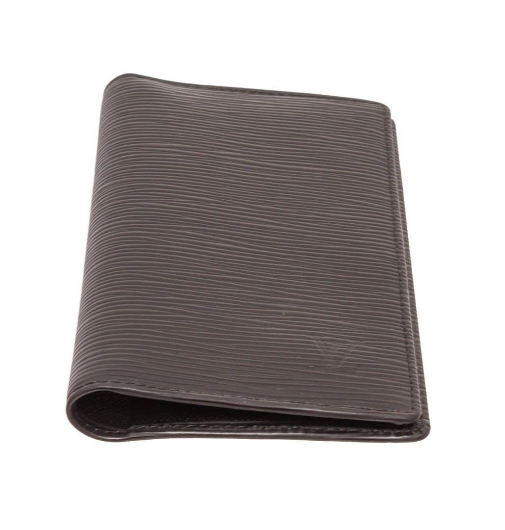 Red Black leather Louis Vuitton pocket agenda cover with debossed logo at front corner, tonal Taiga leather lining, dual interior bill compartments, three interior card slots and bifold closure at exterior. Measurements: Length: 4 in / 10 cm Width: 0.5 in / 1 cm 7.25 in / 18 cm Condition: Pre-Owned Good overall, please see photographs for detail.
