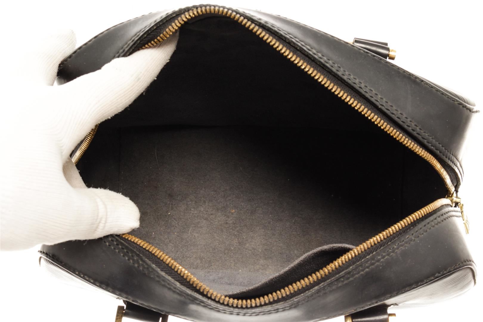 One Louis Vuitton Black Epi Leather Pont Neuf Satchel Bag. Item is sold AS-IS. All available information is listed in the description and shown in the photo. This sophisticated tote is finely crafted of Louis Vuitton signature textured black epi leather. The bag features thin and sturdy rolled leather top handles with squared brass links, and a wrap around zipper. This handbag opens to a alcantara microfiber interior with zipper and patch pockets.