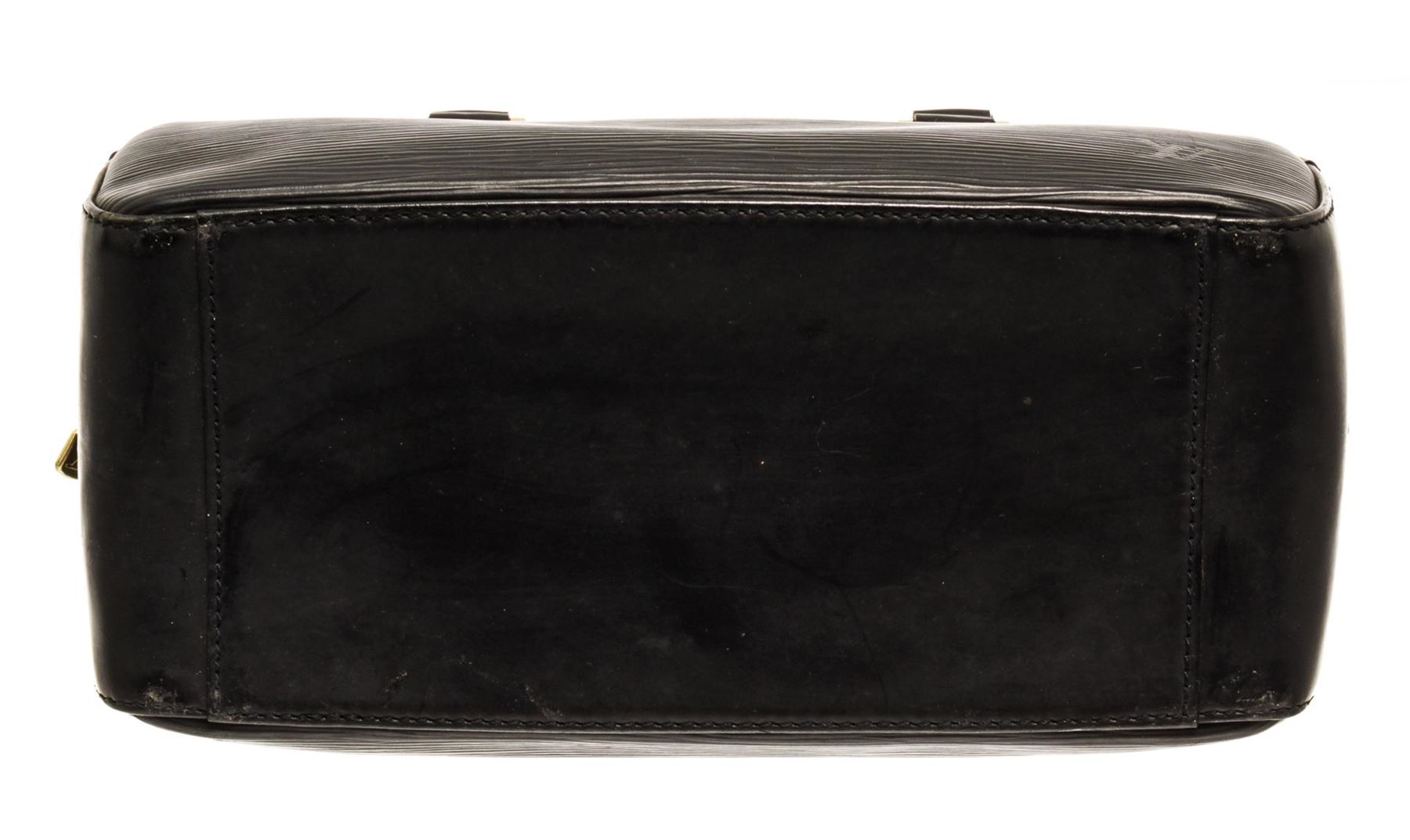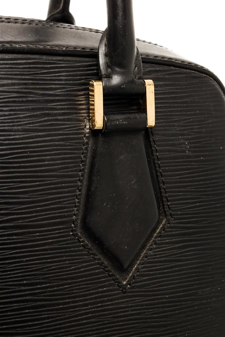 One Louis Vuitton Black Epi Leather Pont Neuf Satchel Bag. Item is sold AS-IS. All available information is listed in the description and shown in the photo. This sophisticated tote is finely crafted of Louis Vuitton signature textured black epi leather. The bag features thin and sturdy rolled leather top handles with squared brass links, and a wrap around zipper. This handbag opens to a alcantara microfiber interior with zipper and patch pockets.