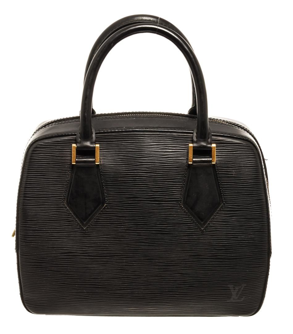 One Louis Vuitton Black Epi Leather Pont Neuf Satchel Bag. Item is sold AS-IS. All available information is listed in the description and shown in the photo. This sophisticated tote is finely crafted of Louis Vuitton signature textured black epi leather. The bag features thin and sturdy rolled leather top handles with squared brass links, and a wrap around zipper. This handbag opens to a alcantara microfiber interior with zipper and patch pockets.