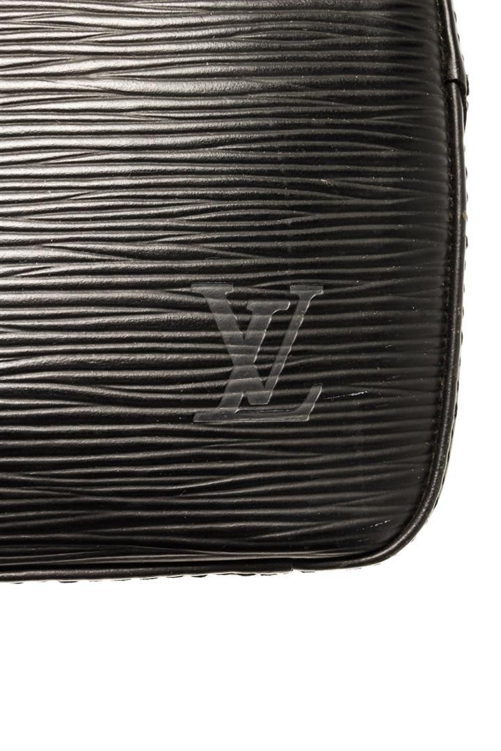 One Louis Vuitton Black Epi Leather Pont Neuf Satchel Bag. Item is sold AS-IS. All available information is listed in the description and shown in the photo. This sophisticated tote is finely crafted of Louis Vuitton signature textured black epi leather. The bag features thin and sturdy rolled leather top handles with squared brass links, and a wrap around zipper. This handbag opens to a alcantara microfiber interior with zipper and patch pockets.