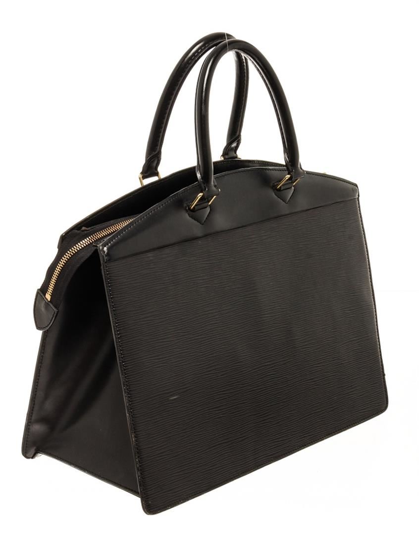 One Louis Vuitton Black Epi Leather Riviera Bag. Item is sold AS-IS. All available information is listed in the description and shown in the photo. louis vuitton black epi leather riviera bag with features gold hardware, black leather handles, black leather interior, and a gold zipper closure. Height: 11" Width: 6" Depth: 14, Handle Drop: 6" / 27.94 x 15.24 x 35.56 Cm