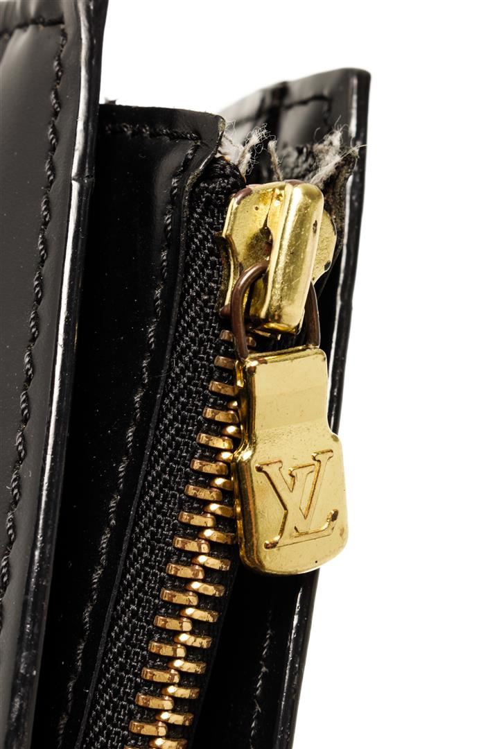 One Louis Vuitton Black Epi Leather Riviera Handbag. Item is sold AS-IS. All available information is listed in the description and shown in the photo. Black Epi leather Louis Vuitton Riviera Bag with silver-tone hardware, single pocket at front exterior, dual rolled leather top handles, black leather lining, four pockets at interior walls, elastic holders at interior and zip closure at top.