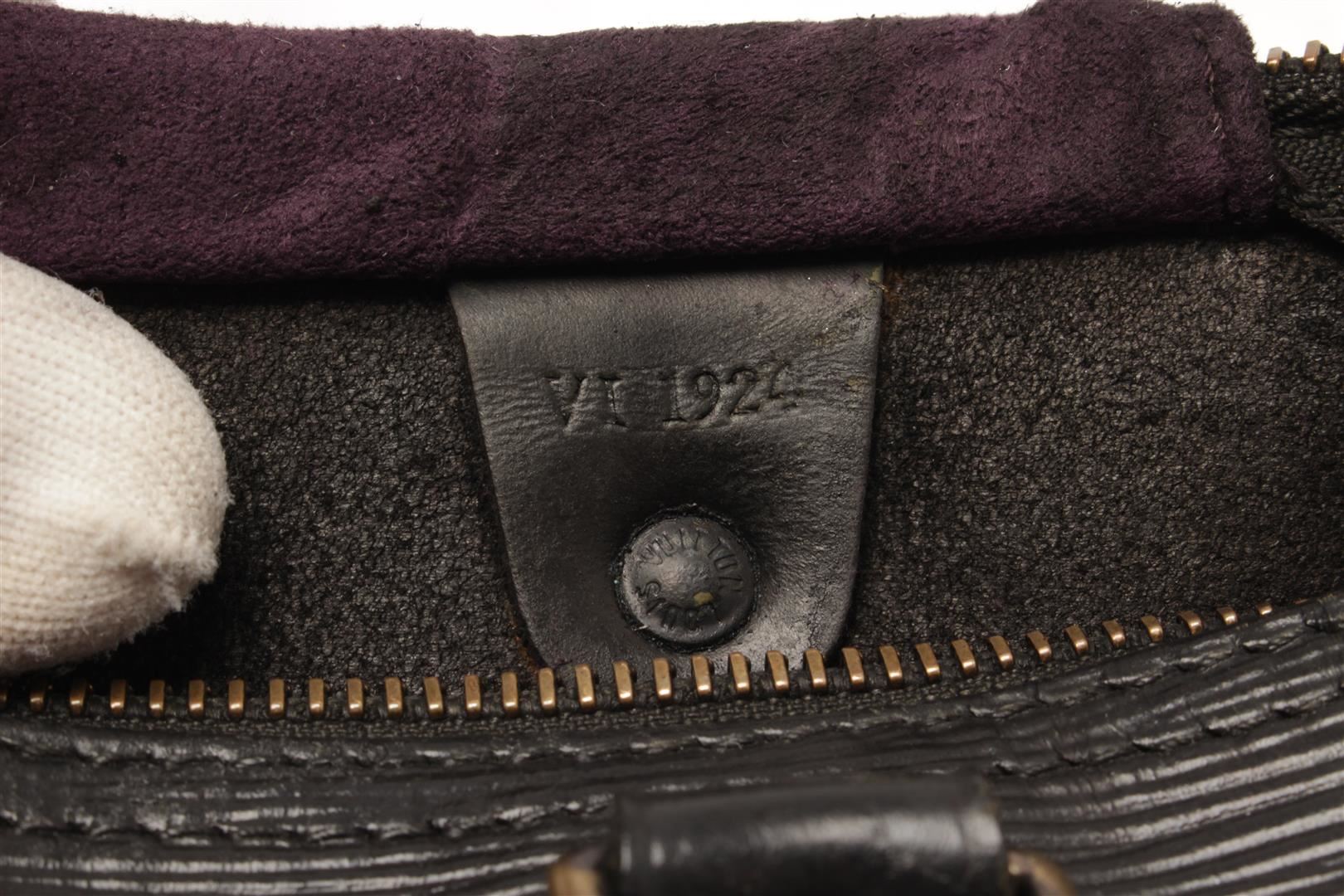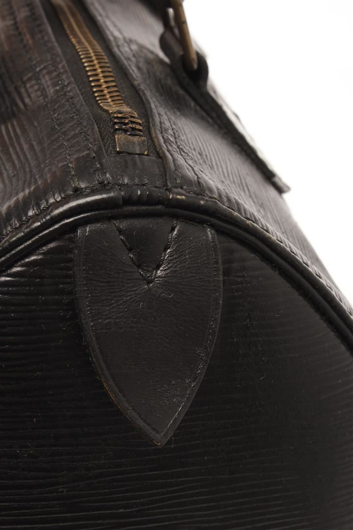 One Louis Vuitton Black Epi Leather Speedy 35 Satchel Bag. Item is sold AS-IS. All available information is listed in the description and shown in the photo. Louis Vuitton Black Epi Leather Speedy 35 Satchel Bag with gold-tone hardware, epi leather body, an exterior side slip pocket, rolled handles, a top zip closure, and an interior pocket. PLEASE NOTE: Bag has been redyed. There are creases on the leather throughout. There are markings on the leather. Please refer to photos. (HxWxD): 23.5cm x 37.5cm x 19.5cm / 9.25'' x 14.76'' x 7.67''