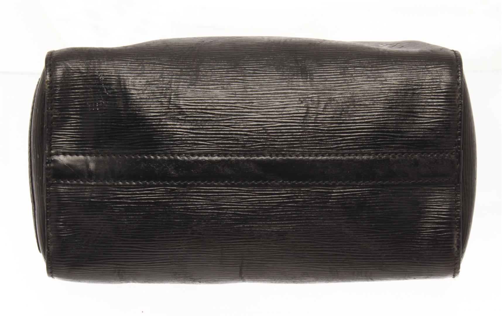 One Louis Vuitton Black Epi Leather Speedy 35 Satchel Bag. Item is sold AS-IS. All available information is listed in the description and shown in the photo. Louis Vuitton Black Epi Leather Speedy 35 Satchel Bag with gold-tone hardware, epi leather body, an exterior side slip pocket, rolled handles, a top zip closure, and an interior pocket. PLEASE NOTE: Bag has been redyed. There are creases on the leather throughout. There are markings on the leather. Please refer to photos. (HxWxD): 23.5cm x 37.5cm x 19.5cm / 9.25'' x 14.76'' x 7.67''