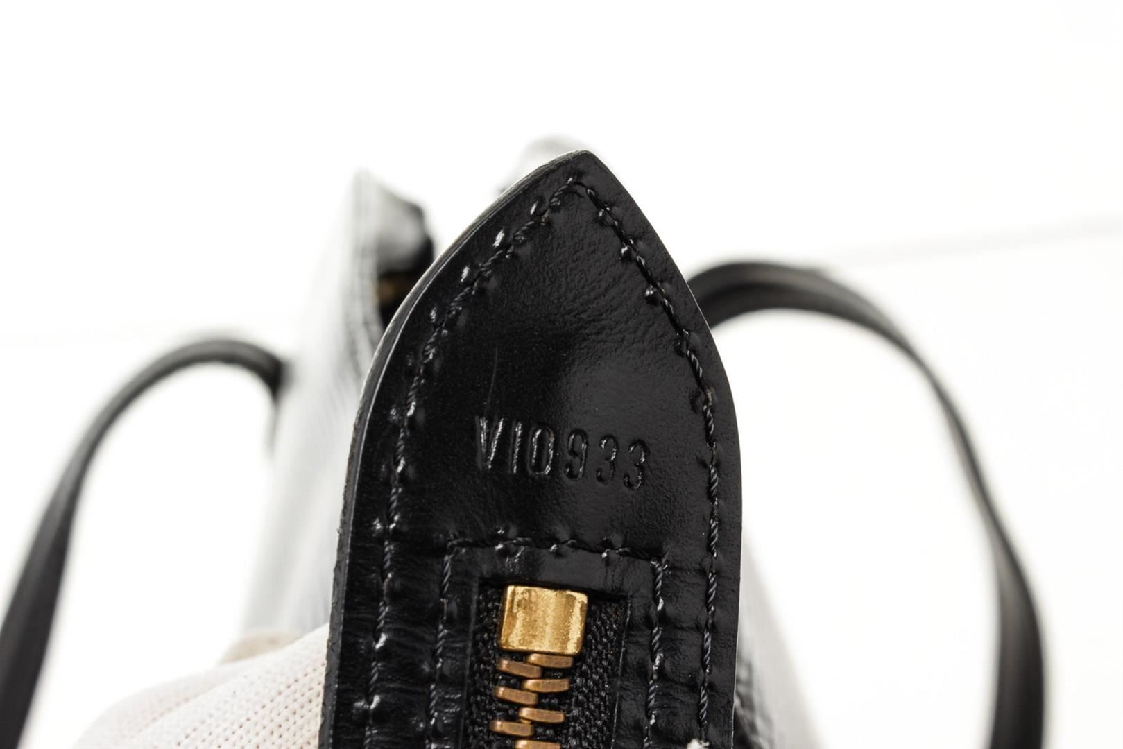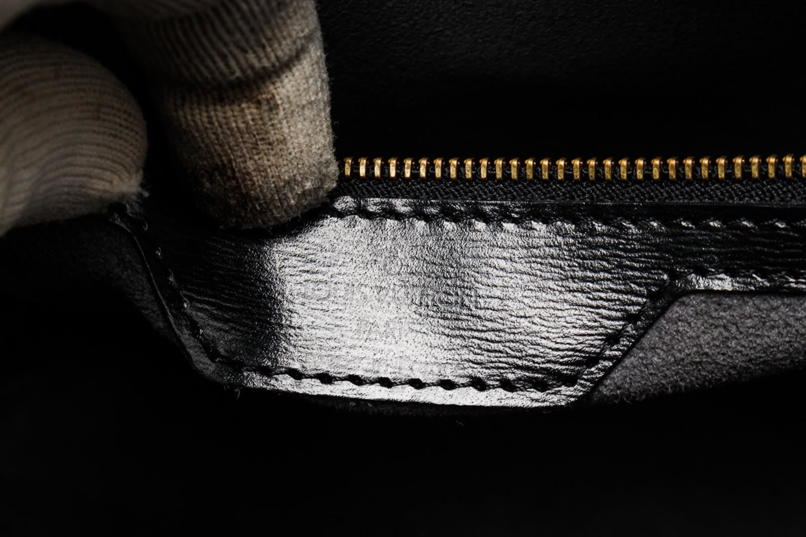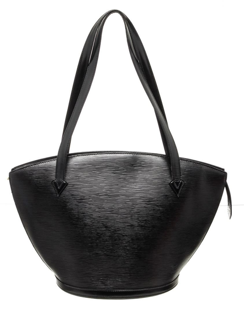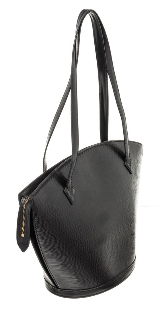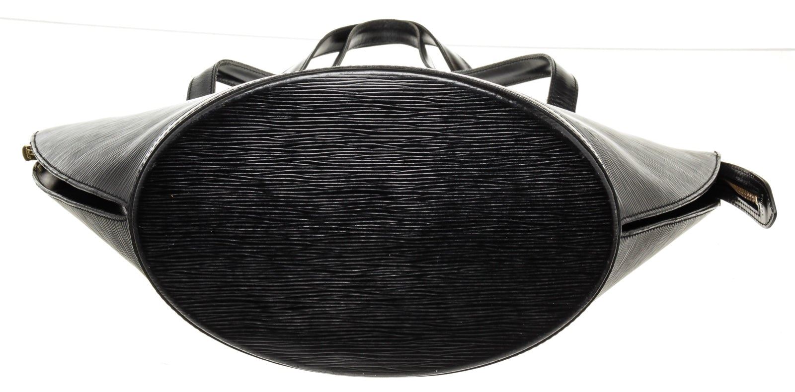 Louis Vuitton Black Epi Leather St. Jacques GM Shoulder Bag with epi leather, brass hardware, tonal stitching throughout, dual flat shoulder straps, tonal Alcantara lining, single pocket with zip closure at interior wall and zip closure at top.