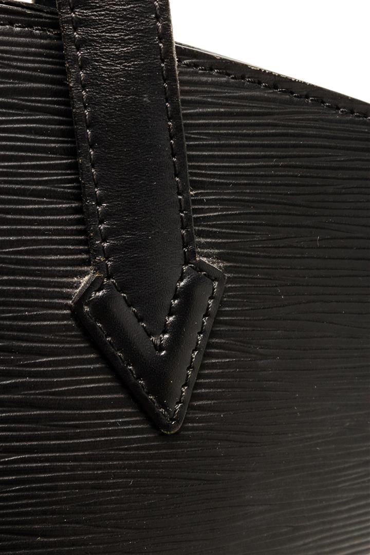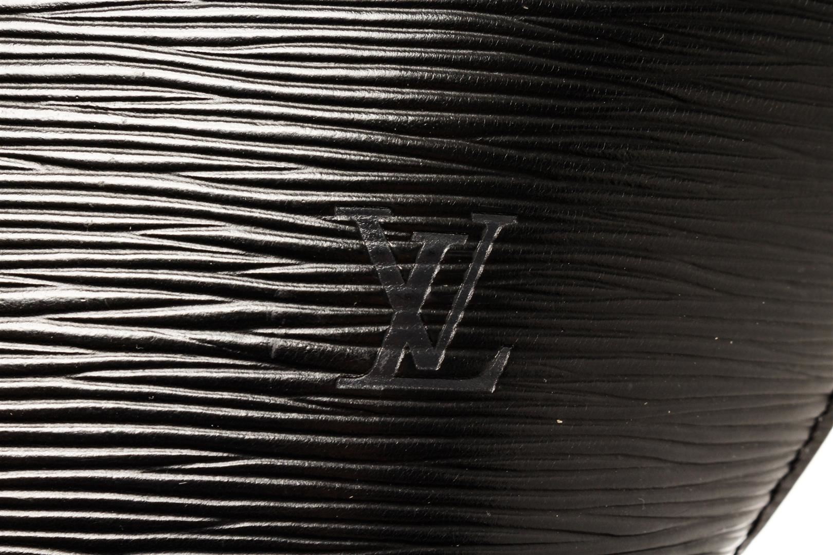 One Louis Vuitton Black Epi Leather St. Jacques PM Shoulder Bag. Item is sold AS-IS. All available information is listed in the description and shown in the photo. Louis Vuitton Black Epi Leather St. Jacques PM Shoulder Bag with gold-tone hardware, black leather trim, grey alcantara lining, interior slip pocket, dual flat leather handles in black, and zip closure at the top. .