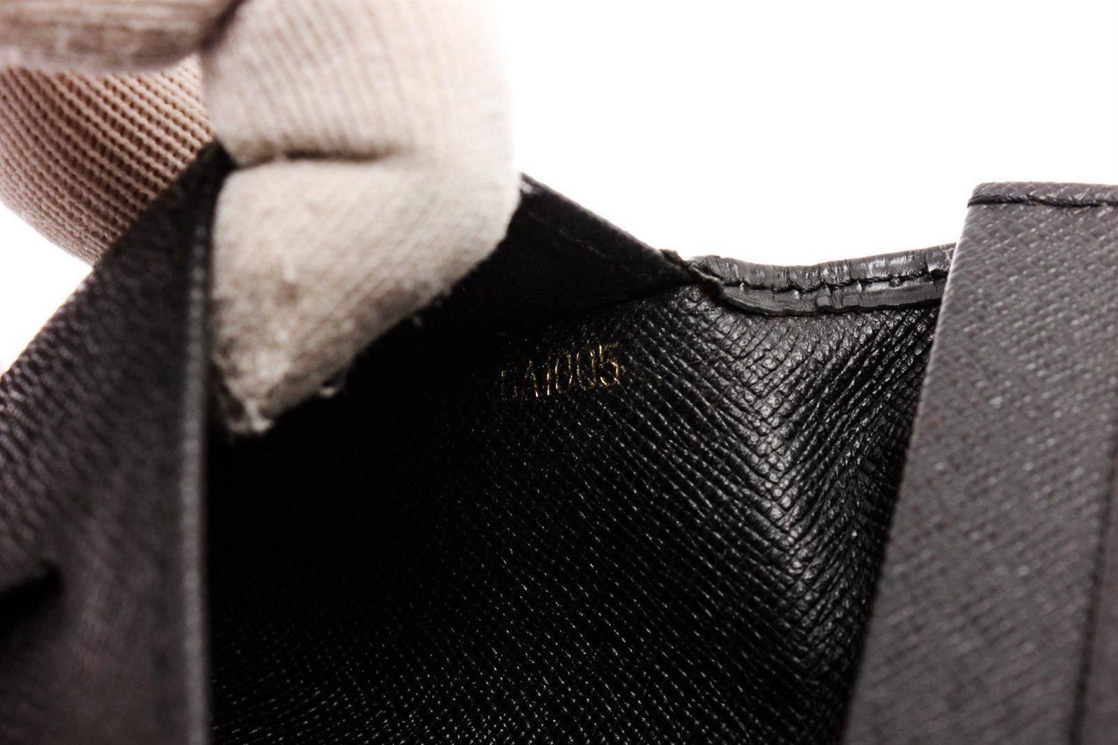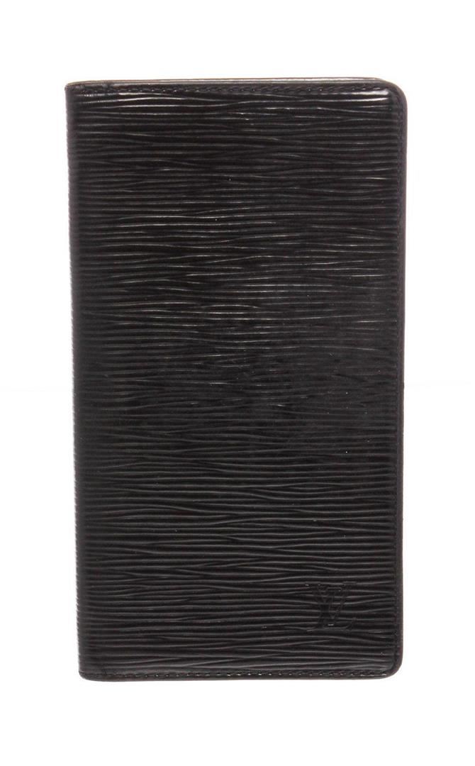 Black Epi leather Louis Vuitton Vertical wallet with debossed logo at front corner, tonal leather interior, three bill compartments, six interior card slots and fold closure at front. Measurements: Length 4 in / 10 cm Width 5 in / 13 cm Height 7 in / 18 cm Condition: Pre-Owned Good overall, please see photographs for detail.