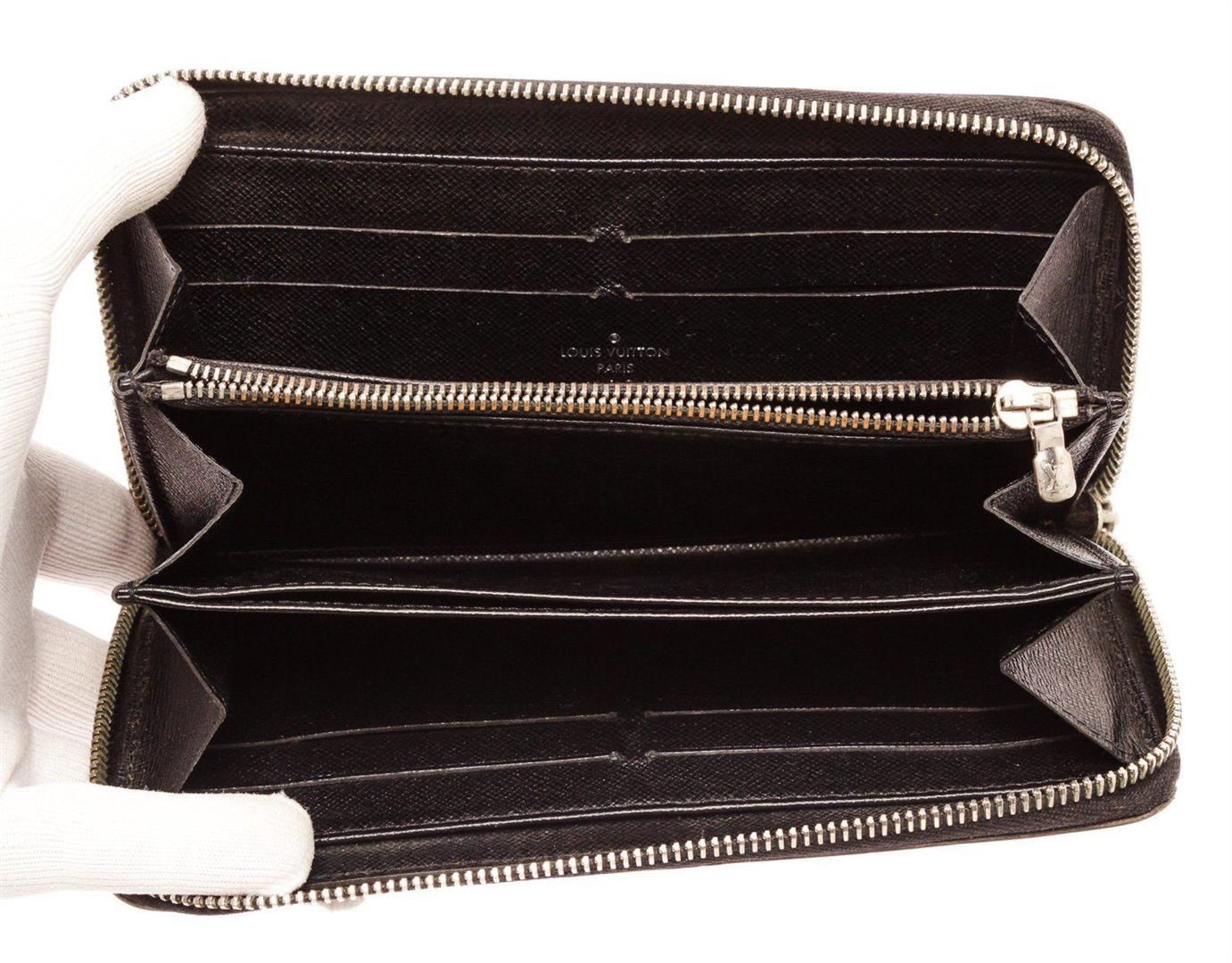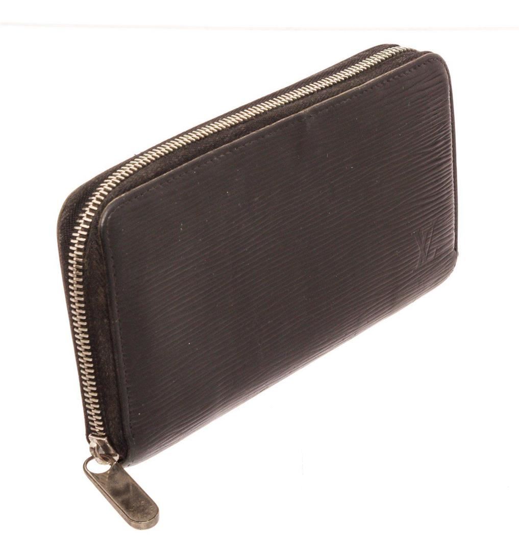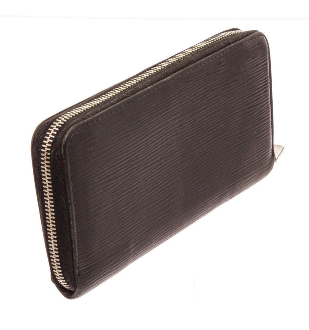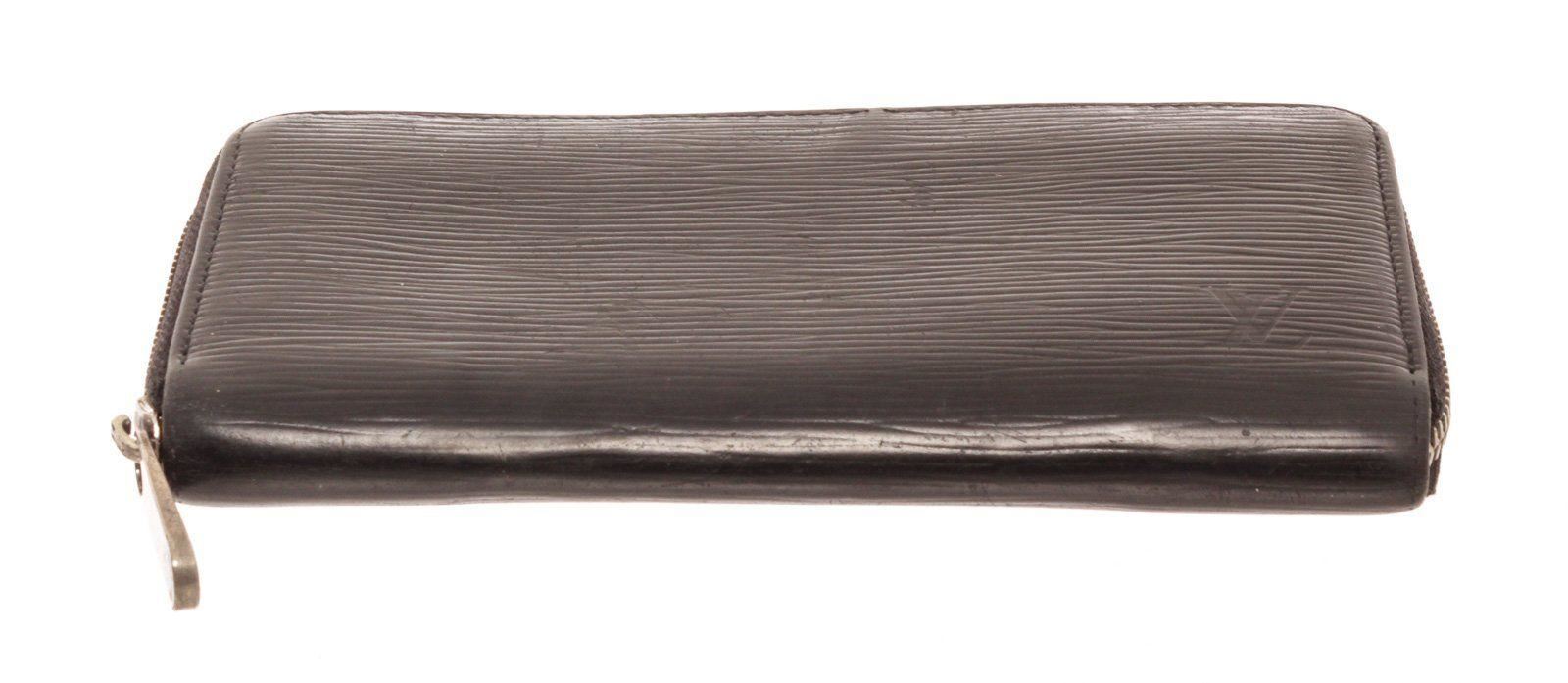 Louis Vuitton Black Epi Leather Zippy Wallet with silver-tone hardware, leather lining, debossed logo, three bill slots, card slots and zip closure. Measurements: Length 0.75 in / 2 cm Width 4.25 in / 11 cm Height 3 in / 8 cm Condition: Pre-Owned Good overall, please see photographs for detail.