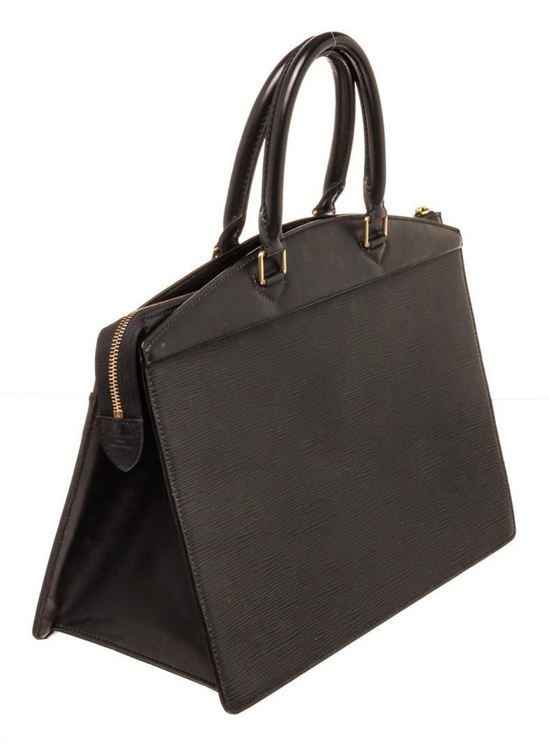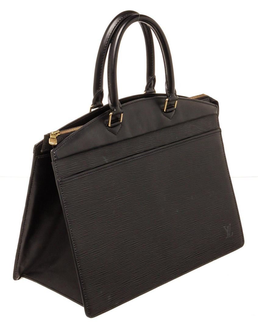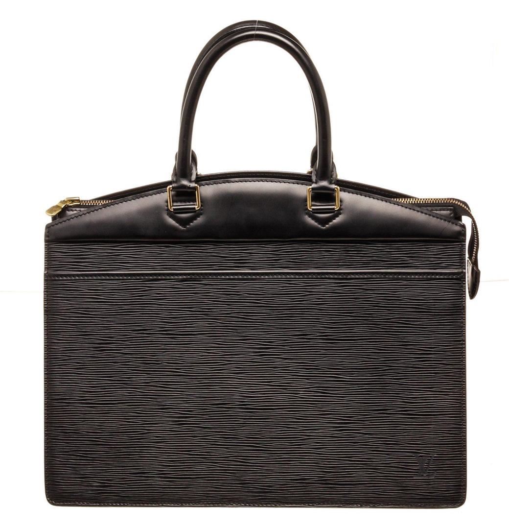 One Louis Vuitton Black Epi Riviera Tote Bag. Item is sold AS-IS. Please check photos and descriptions for all available details. Louis Vuitton Black Epi Riviera Tote Bag with material epi leather, gold-tone hardware, trim tan vachetta leather, exterior slip pocket, interior slip pockets, leather lining, dual top handle and zipper closure.