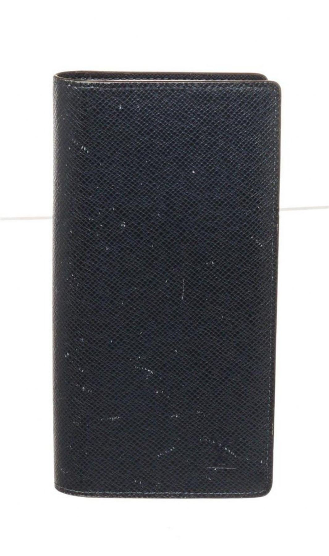 Louis Vuitton Black Leather Brazza Wallet. Louis Vuitton Black Leather Brazza Wallet with material leather, gold-tone hardware, trim tan vachetta leather, interior card holder pocket, leatherlining and flap closure.
