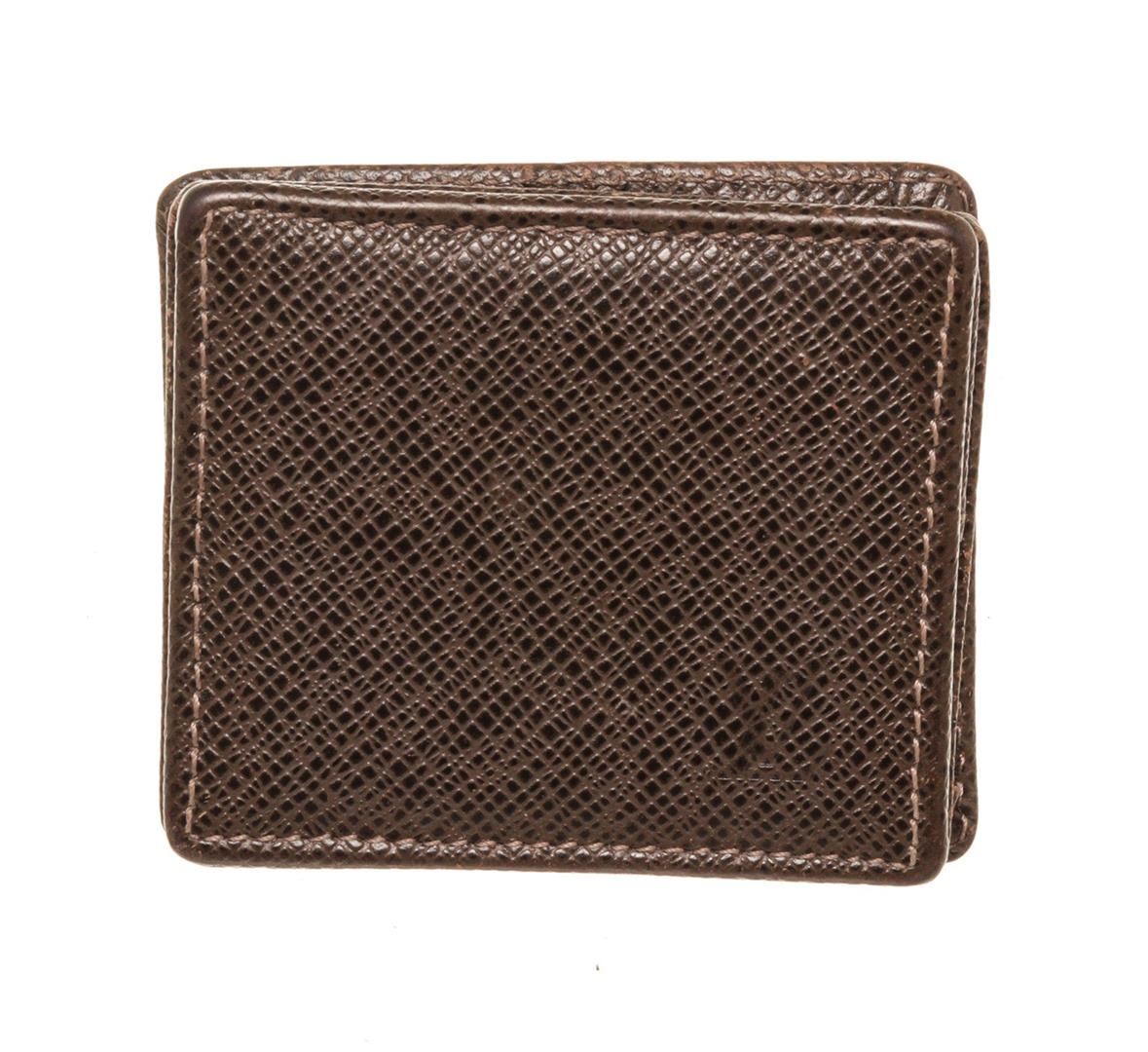 One Louis Vuitton Black Leather Coin Case Taiga Wallet. Item is sold AS-IS. All available information is listed in the description and shown in the photo. Louis Vuitton Black Leather Coin Case Taiga Wallet with material leather, gold-tone hardware, interior flap pockets and push lock closure.