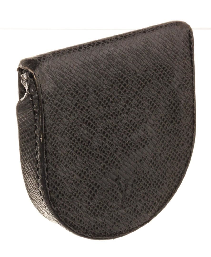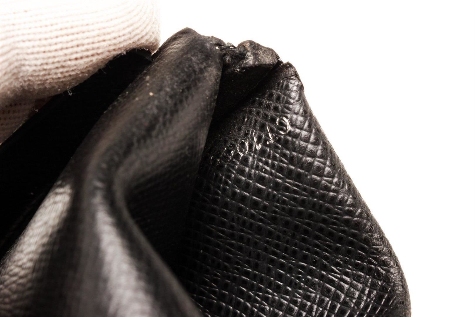 Louis Vuitton Black Leather Coin Purse Wallet with monogram canvas, gold-tone hardware, trim tan vachetta leather, interior slip pocket and snap closure.