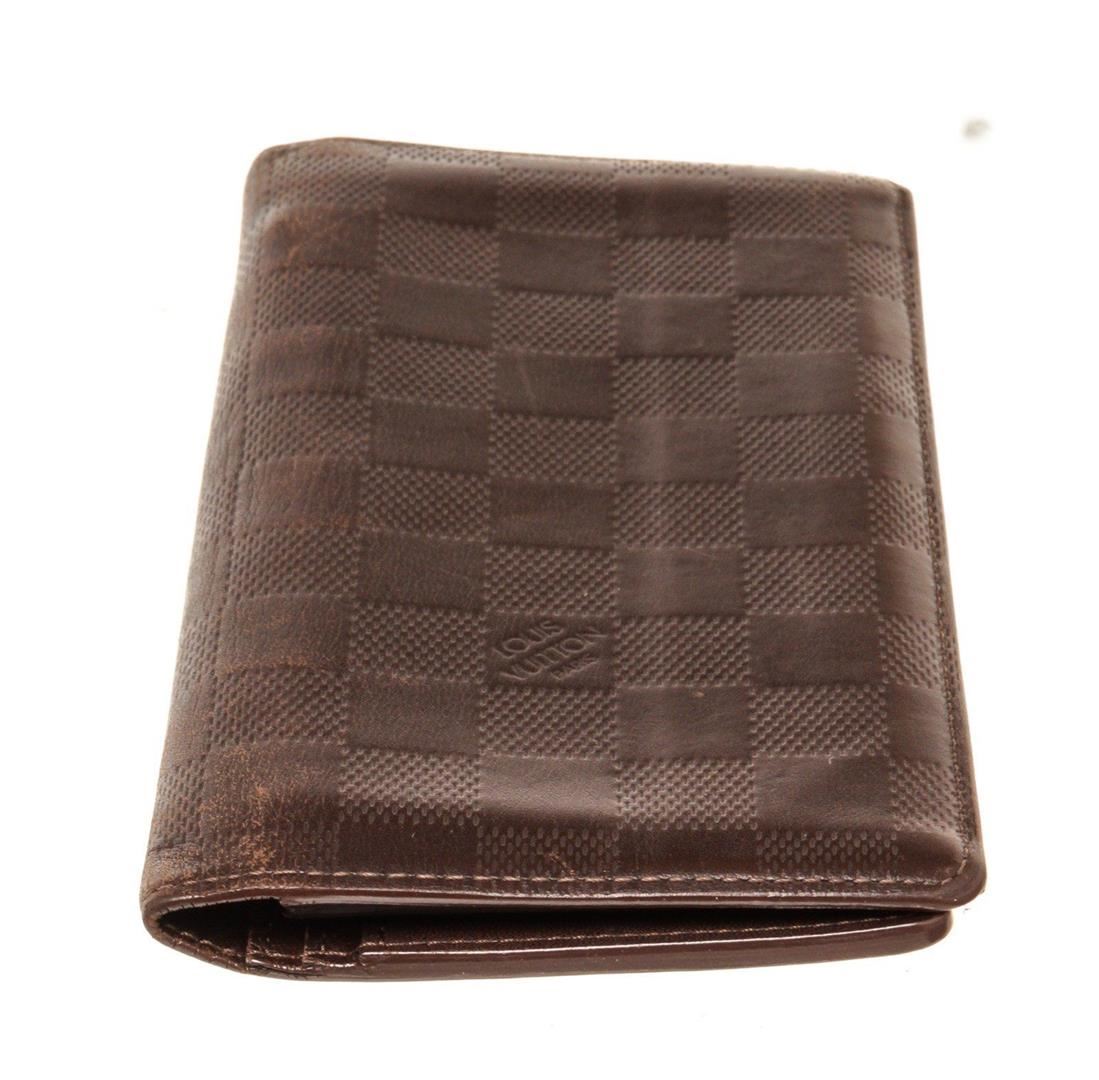 Louis Vuitton Black Leather Damier Infini Brazza Wallet with damier canvas, gold-tone hardware, trim tan vachetta leather, interior card holder pocket, leatherlining and flap closure.
