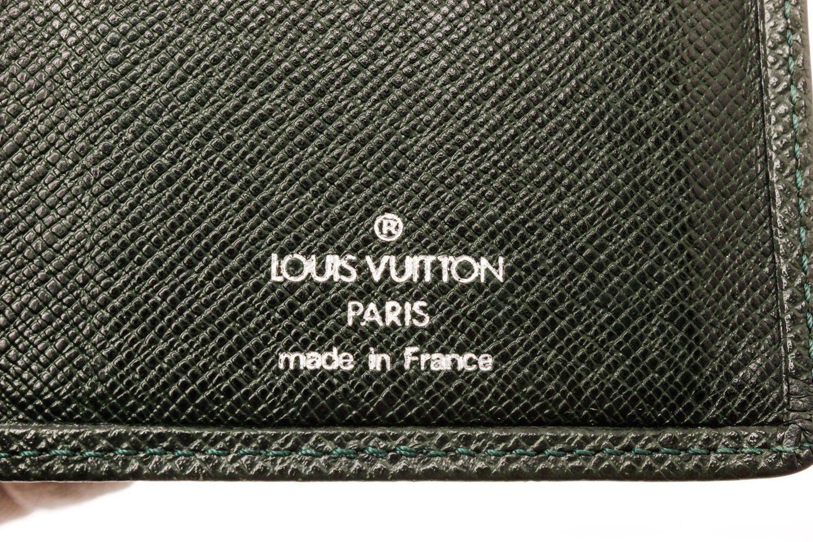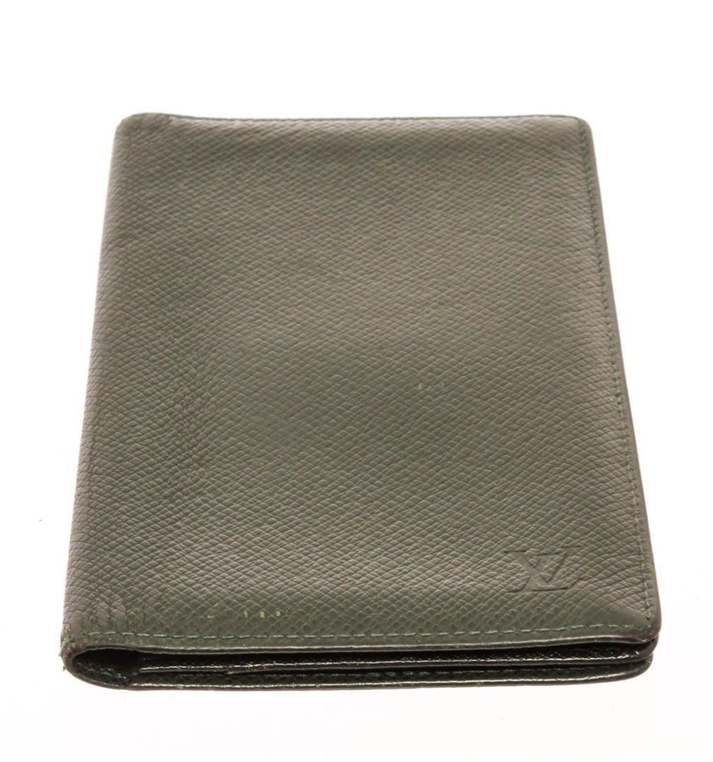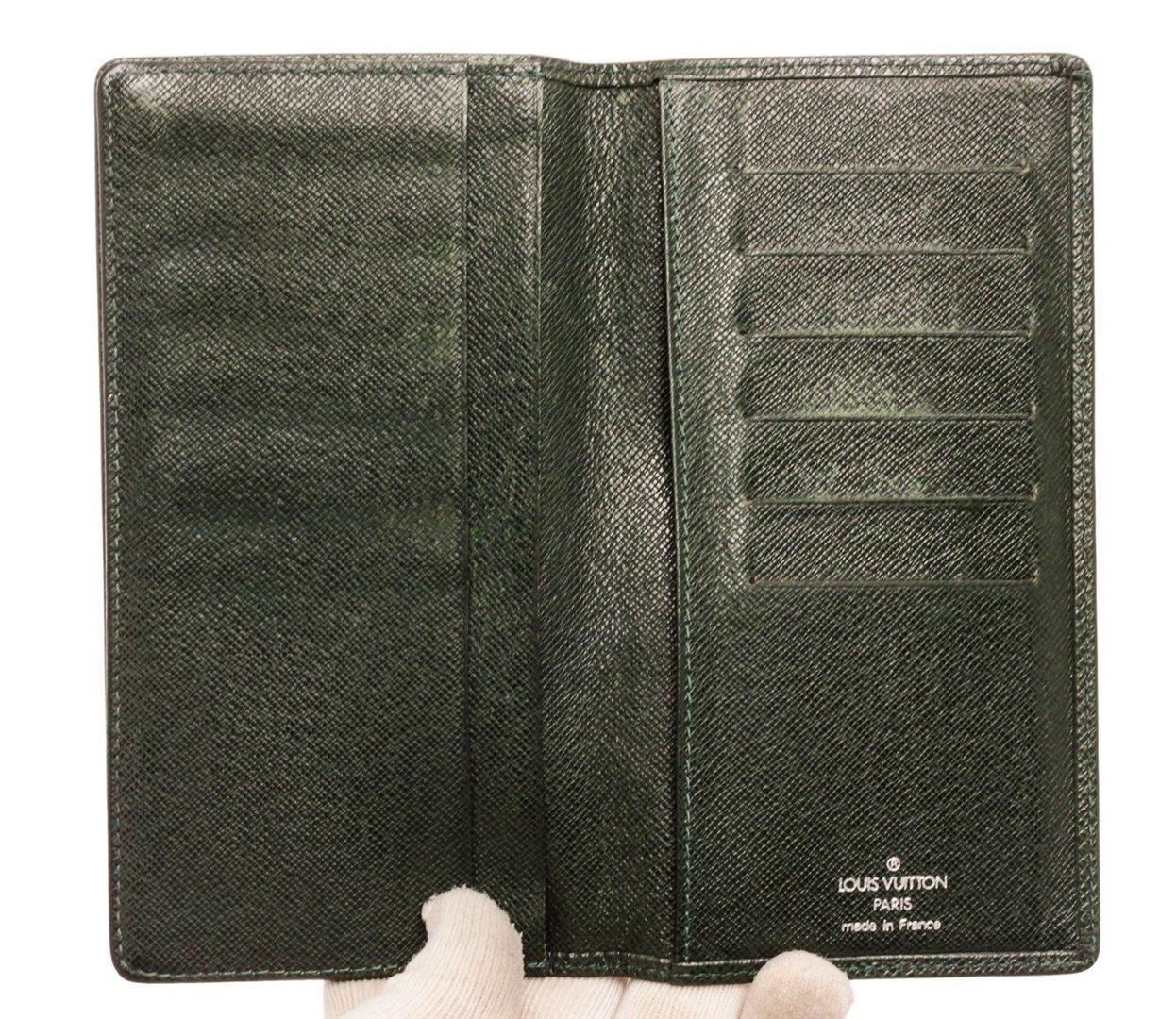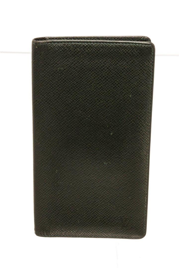 Louis Vuitton Black Leather Long Card Wallet with material leather, gold-tone hardware, interior card holder pockets, trim tan vachetta leather, flap closure. Measurements: Length 6.5 in / 17 cm Width 3.5 in / 9 cm Height 0.25 in / 1 cm Condition: Pre-Owned Good overall, please see photographs for detail.
