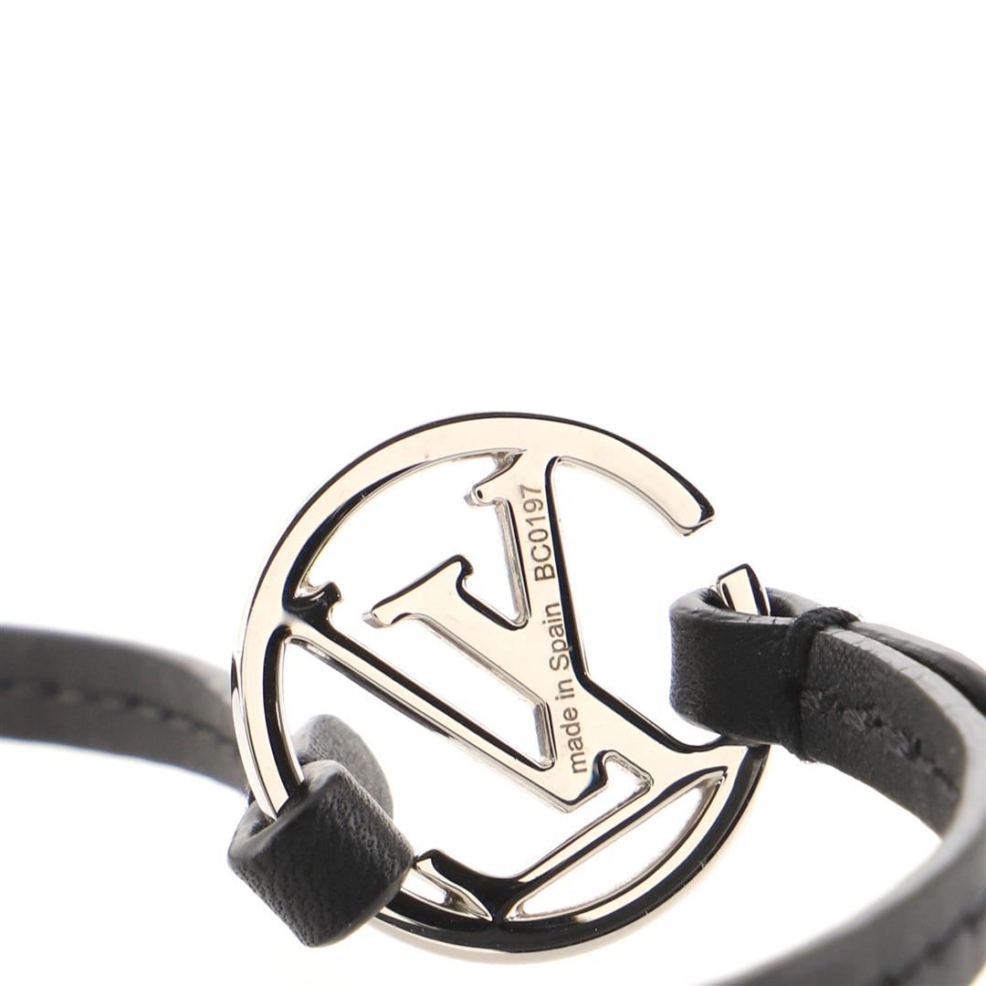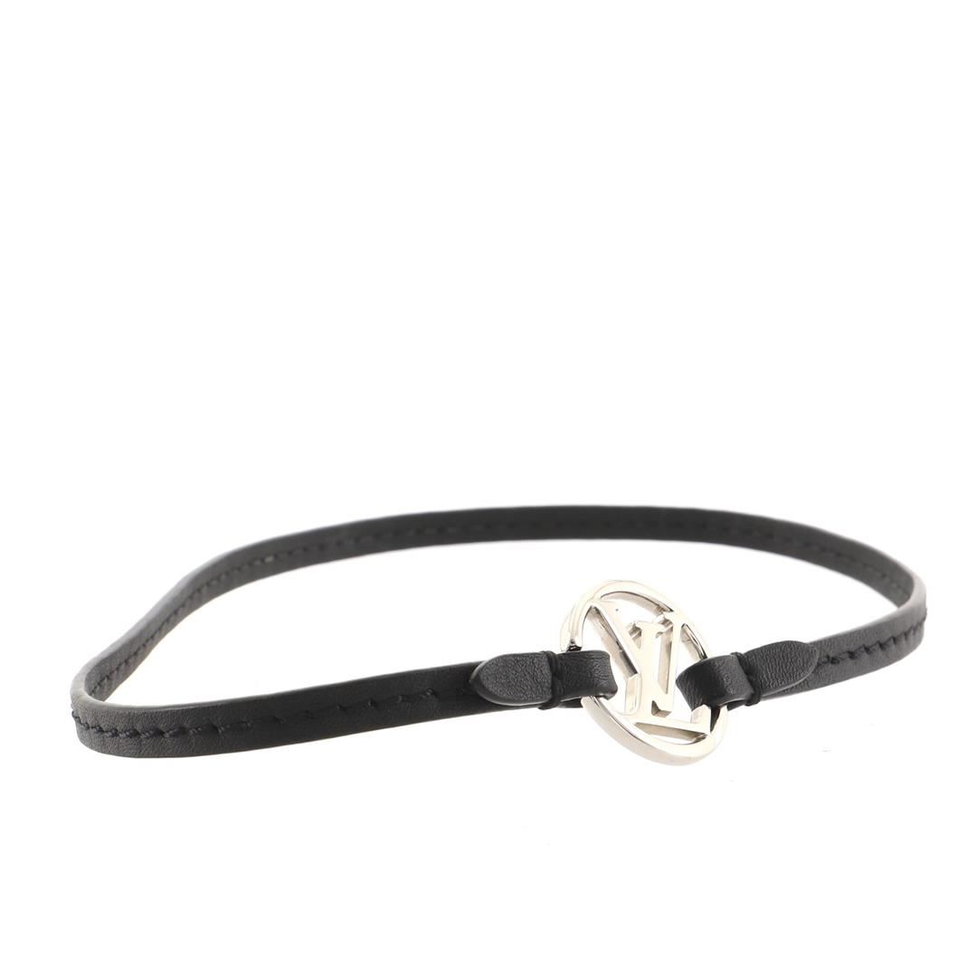 One Louis Vuitton Black Leather Metal Louis Vuitton Round Bracelet. Item is sold AS-IS. All available information is listed in the description and shown in the photo. Louis Vuitton Double Wrap Bracelet features silver-tone pendant with LV Circle signature logo and black double-tour calf leather.