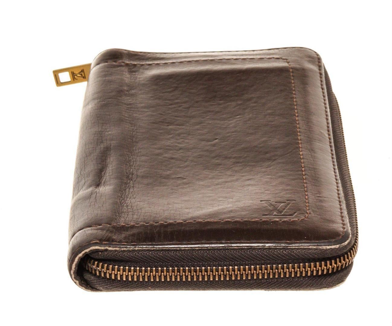 Louis Vuitton Black Leather Zippy Organizer Wallet with material leather, silver-tone hardware, embossed logo at front, tonal grained leather lining, one zip compartment, card slots at interior walls and zip-around closure at exterior.