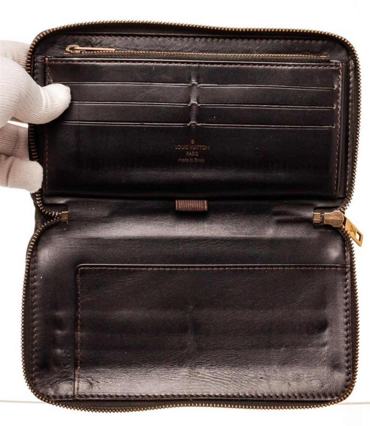 Louis Vuitton Black Leather Zippy Organizer Wallet with material leather, silver-tone hardware, embossed logo at front, tonal grained leather lining, one zip compartment, card slots at interior walls and zip-around closure at exterior.