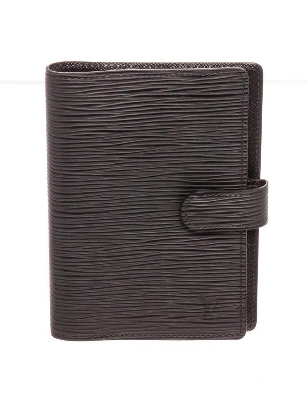 Louis Vuitton Black Monogram Agenda PM Wallet. Louis Vuitton Black Monogram Agenda PM Wallet with gold-tone hardware, monogram material, tan vachetta leather trim, and zipper closure. CONDITION: Pre-Owned Good overall, please see photographs for detail.
