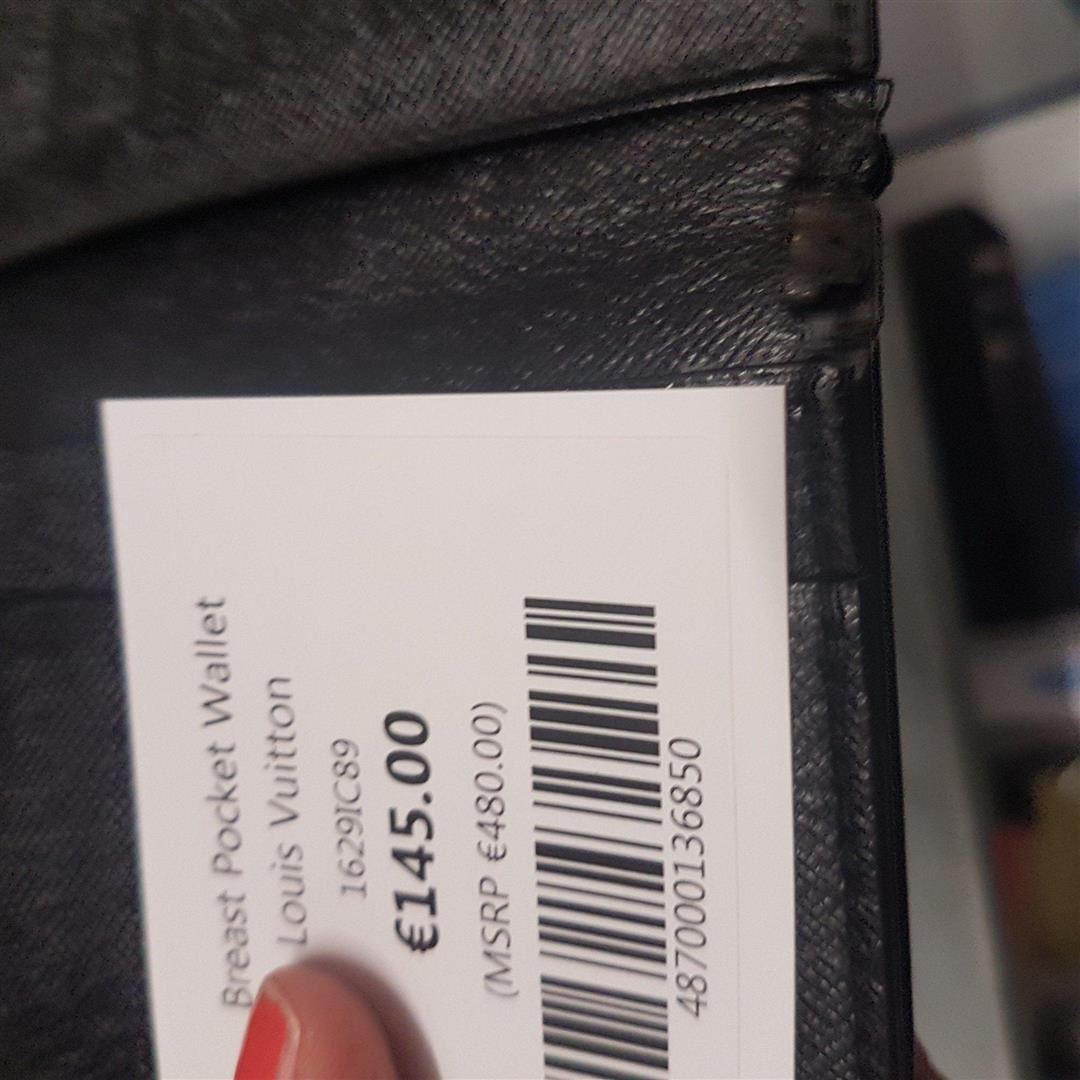 Louis Vuitton Black Monogram Breast Pocket Wallet with gold-tone hardware, tan vachetta leather trim, zipper closure. Measurements: Length: 17.2 in / 44 cm Width: 5 in / 13 cm 14.1 in / 36 cm Condition: Pre-Owned Good overall, please see photographs for detail.