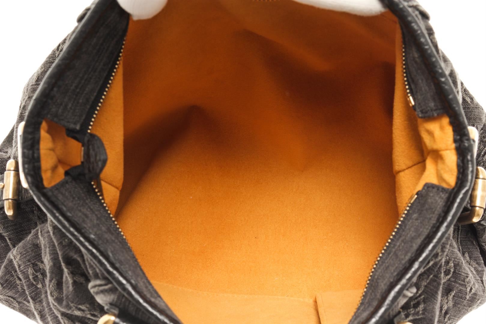 One Louis Vuitton Black Monogram Denim Neo Cabby MM Shoulder Bag. Item is sold AS-IS. All available information is listed in the description and shown in the photo. louis vuitton black monogram denim neo cabby mm shoulder bag with gold-tone hardware, black denim monogram jacquard top zip, side buckle fastening, two rolled top handles, internal logo patch internal patch pockets, full lining metal feet.