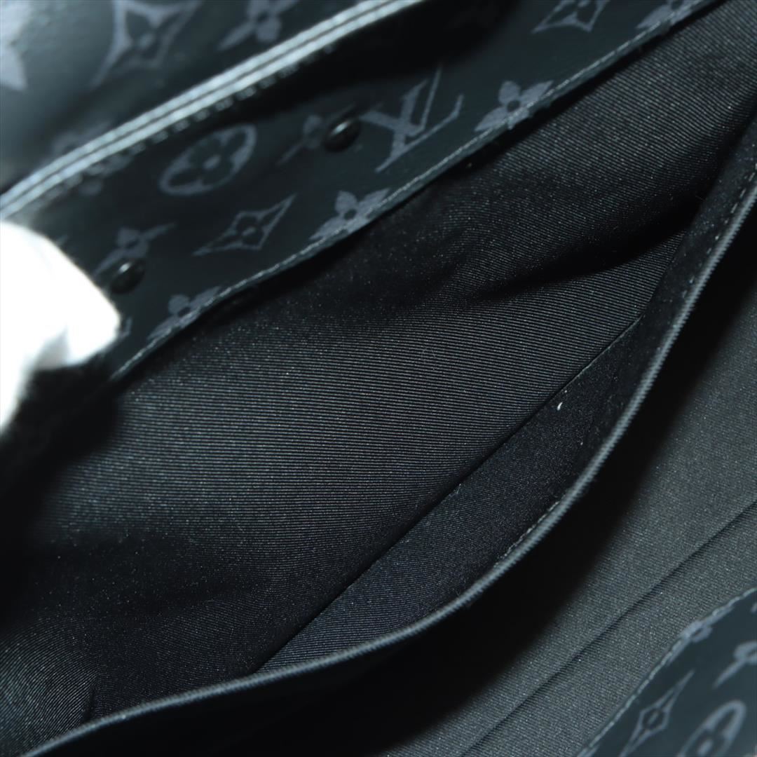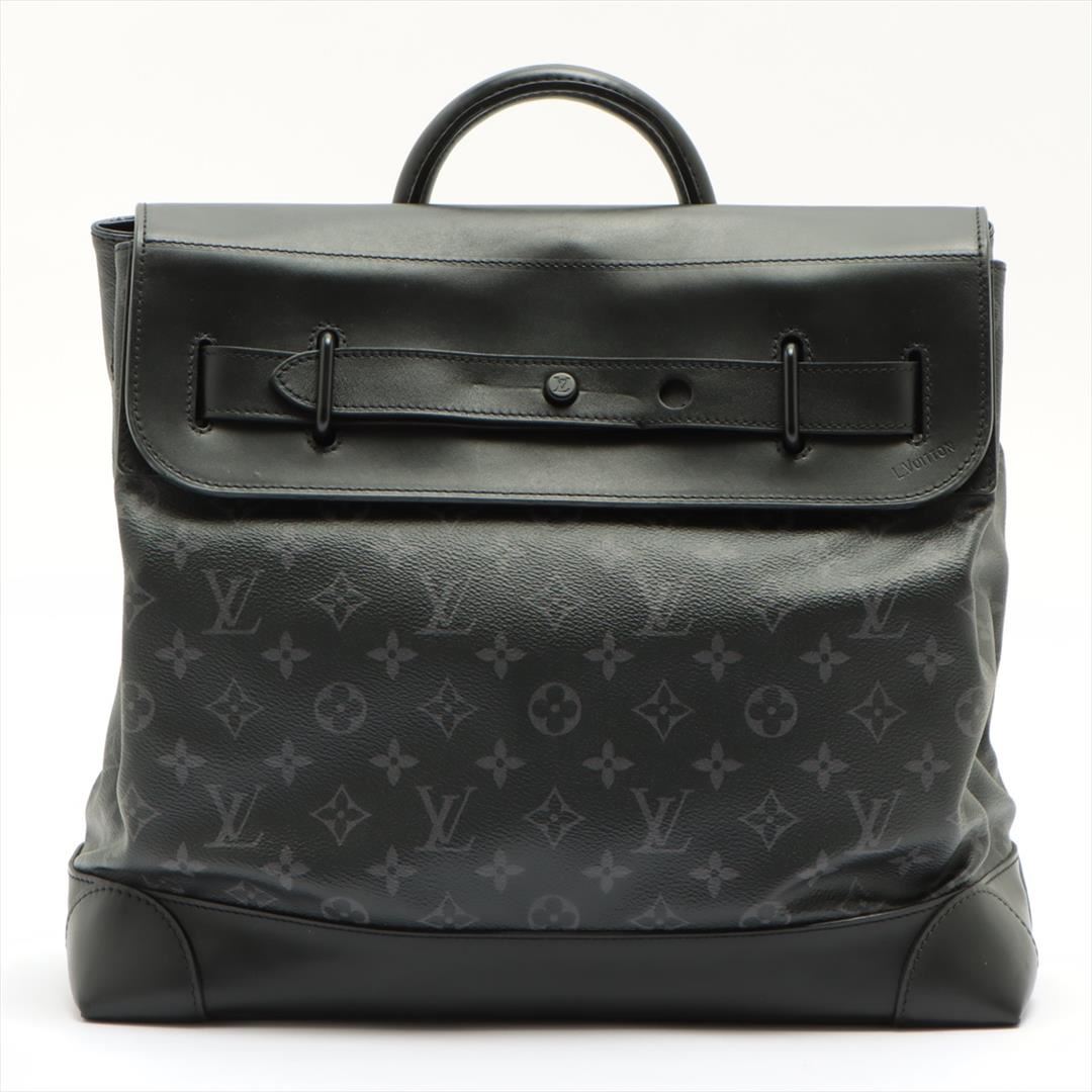 Black and gray monogram Eclipse coated canvas Louis Vuitton Steamer PM bag with black-coated hardware, black leather trim, single rolled handle, chain-link accent, detachable shoulder strap, black grosgrain canvas lining & dual interior pockets and push-l