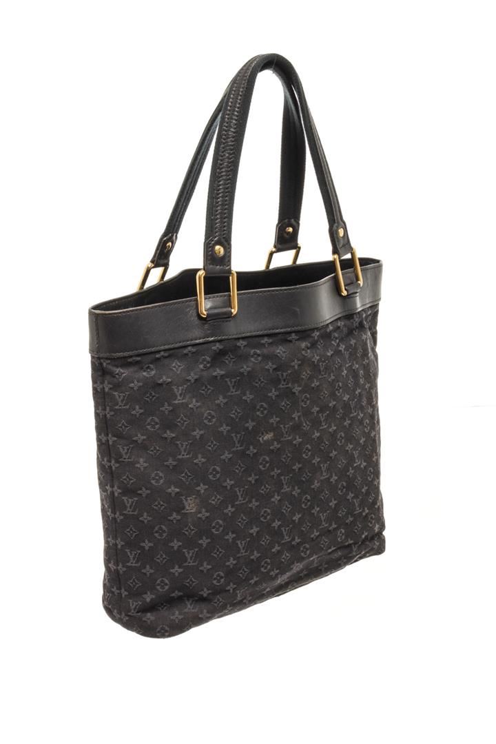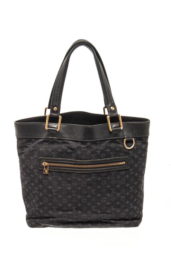 One Louis Vuitton Black Monogram Lucille GM Shoulder Bag. Item is sold AS-IS. All available information is listed in the description and shown in the photo. louis vuitton black monogram lucille gm shoulder bag with leather top handles and leather trim with a frontal zipper pocket and polished brass hardware. the top is open to a fabric interior. Length: 14.00 in, Width: 5.00 in, Height: 12.00 in / 35.56 X 12.7 X 30.48 cm