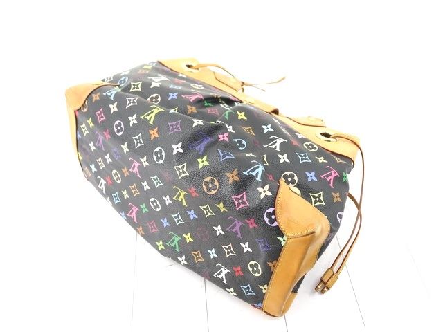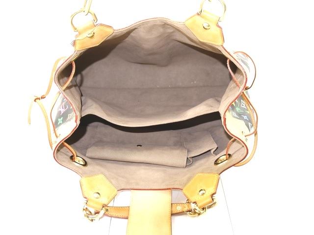 One Louis Vuitton Black Multicolor Monogram Leather Ursula Bag. Item is sold AS-IS. All available information is listed in the description and shown in the photo. Louis Vuitton Black Multicolor Monogram Leather Ursula Bag with brass hardware including handle rings and links, stud detailing, eyelets for the cinch cords, and a clasp closure, Murakami inspired multicolor monogram, leather trim, vachetta cowhide handles with links. .